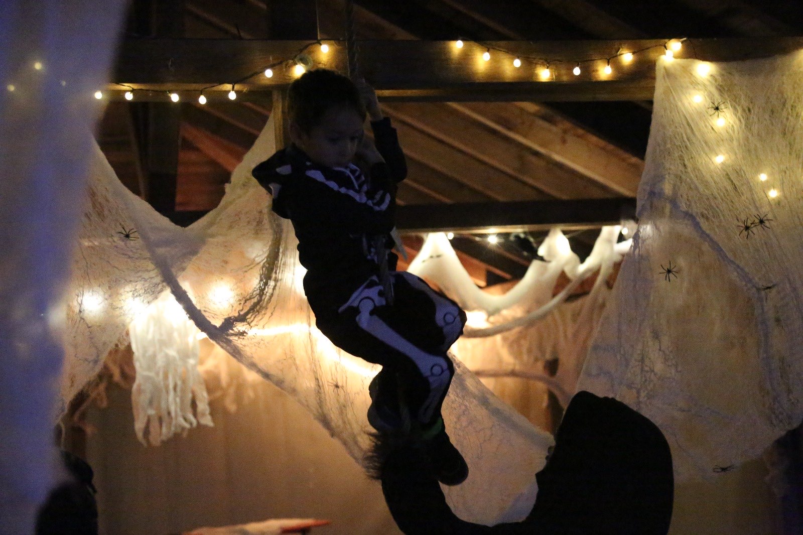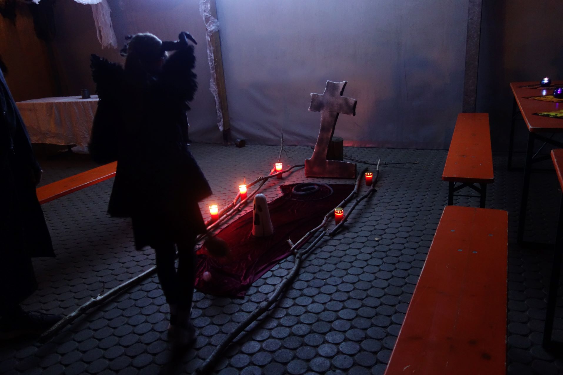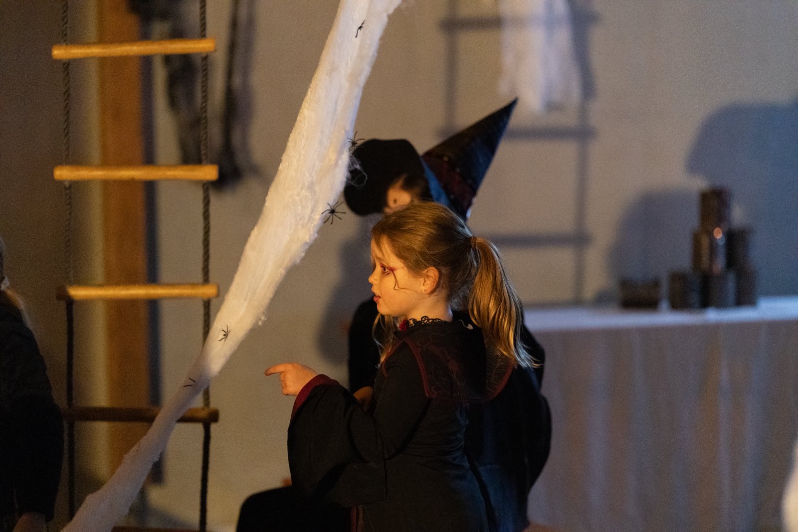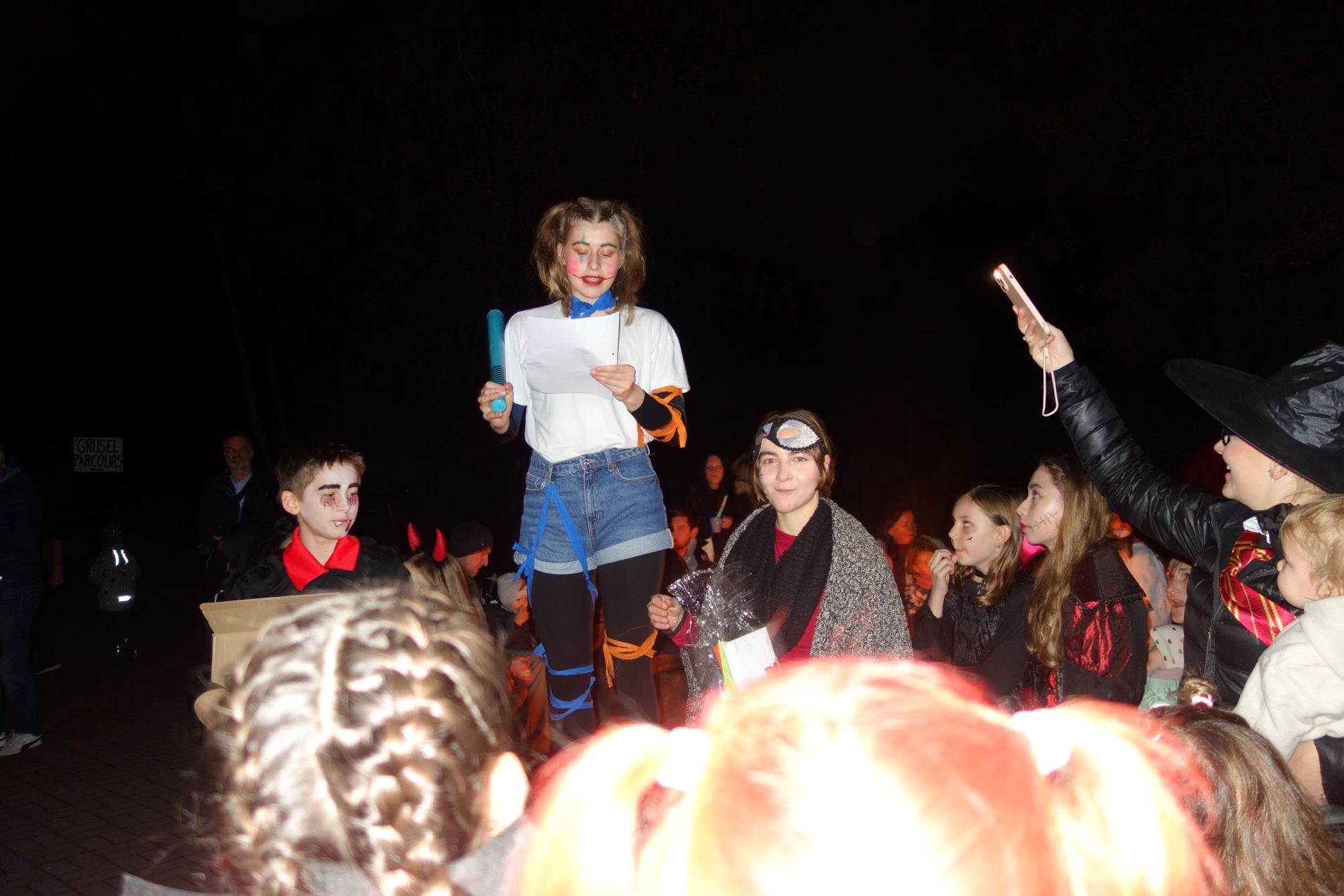 Es gab die beliebte Gruselolympiade mit Spielstationen, für die es als Belohnung bei Absolvierung aller Aktionen eine Urkunde und eine süße Überraschung gab. Warteschlangen gab es auch in diesem Jahr vor dem Gruselparcour durch den diesmal sehr nebligen Geisterwald. Beim Durchlaufen tauchten dort gruselige Gespenster auf, die durch geheimnisvolle Lichter beleuchtet wurden. Die Überraschungsschreie aus dem Wald von Groß und Klein waren nicht zu überhören. Bei den kleineren Kindern waren meist auch die Eltern dabei, so dass es immer eine Hand zum Festhalten gab.