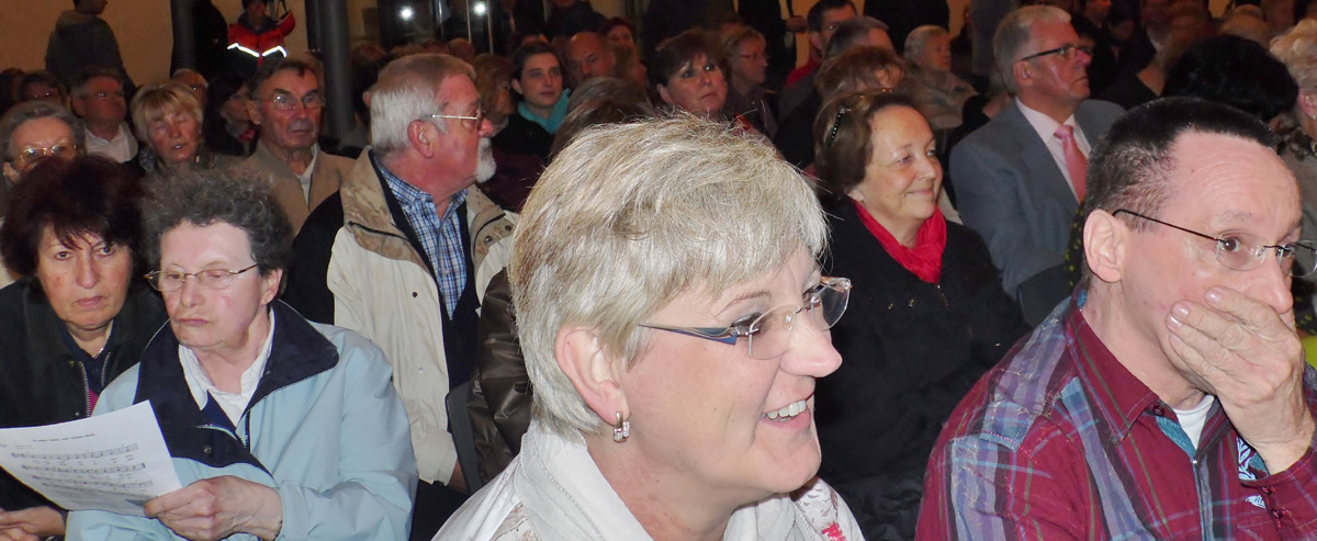 wurden die Sänger, die „Shine your Light“ angestimmt hatten, durch den Mittelgang in den Chorraum geleitet. Der Letzenberg-Stare- Chor präsentierte dem begeistert applaudierenden Publikum ein Madley von bekannten Gospels, Evergreens wie von Eric Clapton, Glashaus, Hubert von Goisern oder Leonard Cohen bis hin zu dem Volkslied „Großer Gott, wir loben Dich“, in das die Hörer spontan einstimmten.