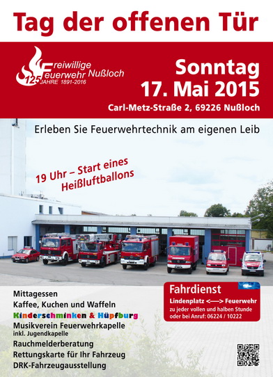 Zwei Tage später, am Sonntag den 17.05.2015 findet ab 10 Uhr der traditionelle Tag der offenen Tür der Nußlocher Wehr statt.
