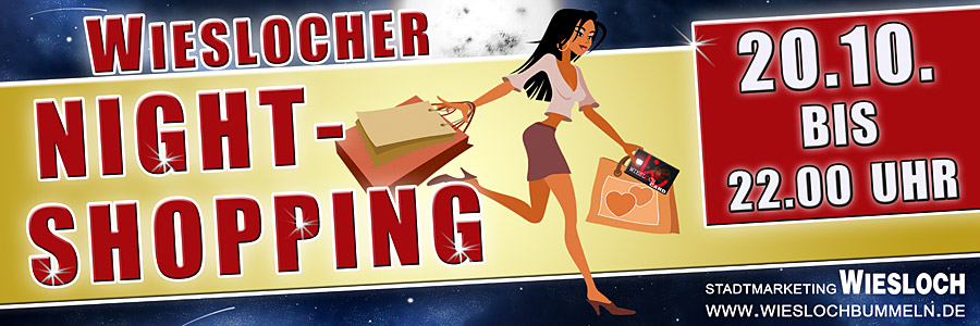 Am Donnerstag, den 20. Oktober lädt der Stadtmarketing Wiesloch e.V. unter dem Motto „Nightshopping“ zum verlängerten Abendbummeln nach Wiesloch ein.