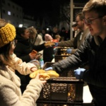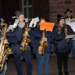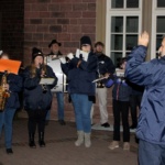 Während sich die Kinder der Theater-AG der Waldschule noch vorbereiten, stimmt der Musikverein Stadtkapelle auf den bevorstehenden Auftritt schon einmal musikalisch ein. Mit Klassikern wie „Laterne, Laterne“ oder „Sankt Martin“ setzt man auf altbekanntes und beliebtes Liedgut. Vor der Bühne hinter dem Astorhaus haben sich bereits Dutzende Menschen versammelt, um das Martinsspiel zu verfolgen, das den Martinszug traditionell einleitet.