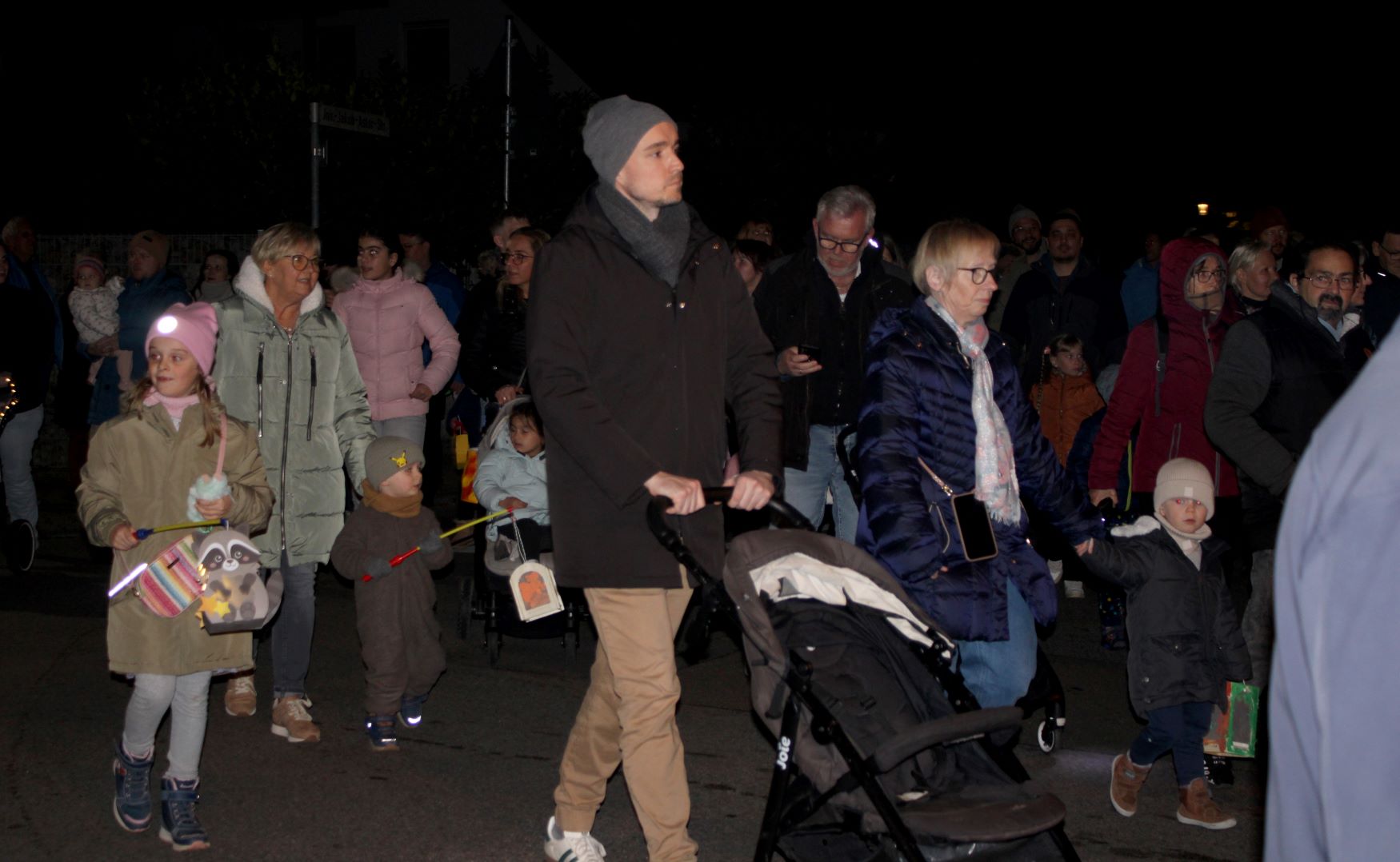 Die Jugendfeuerwehr führt mit Fackelträgern den Zug an, direkt darauf folgen die Musikerinnen und Musiker des Spielmannszugs der Feuerwehr. Dahinter reihen sich Hunderte Teilnehmerinnen und Teilnehmer ein und ziehen fröhlich durch die Straßen. Die Kinder halten dabei strahlend ihre bunten Laternen in der Hand. Mit traditionellen Liedern wie „Ich geh mit meiner Laterne“ wird der Zug musikalisch begleitet und viele singen die Strophen mit.