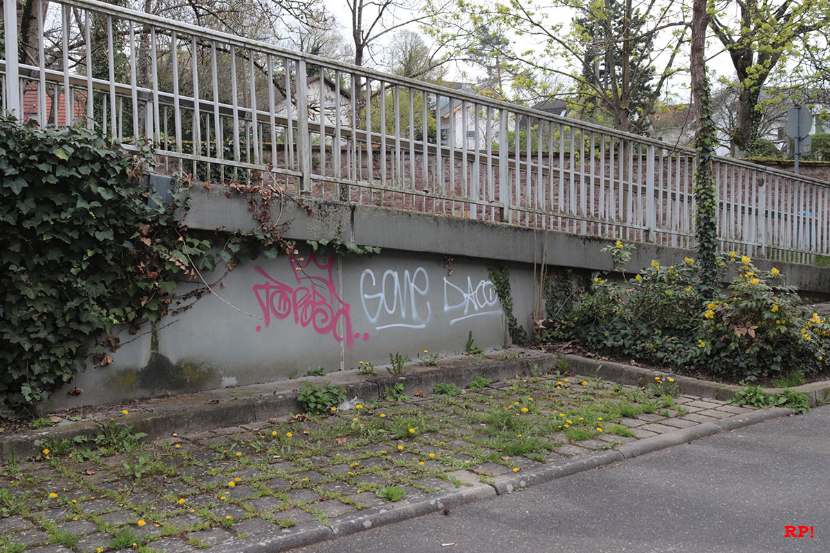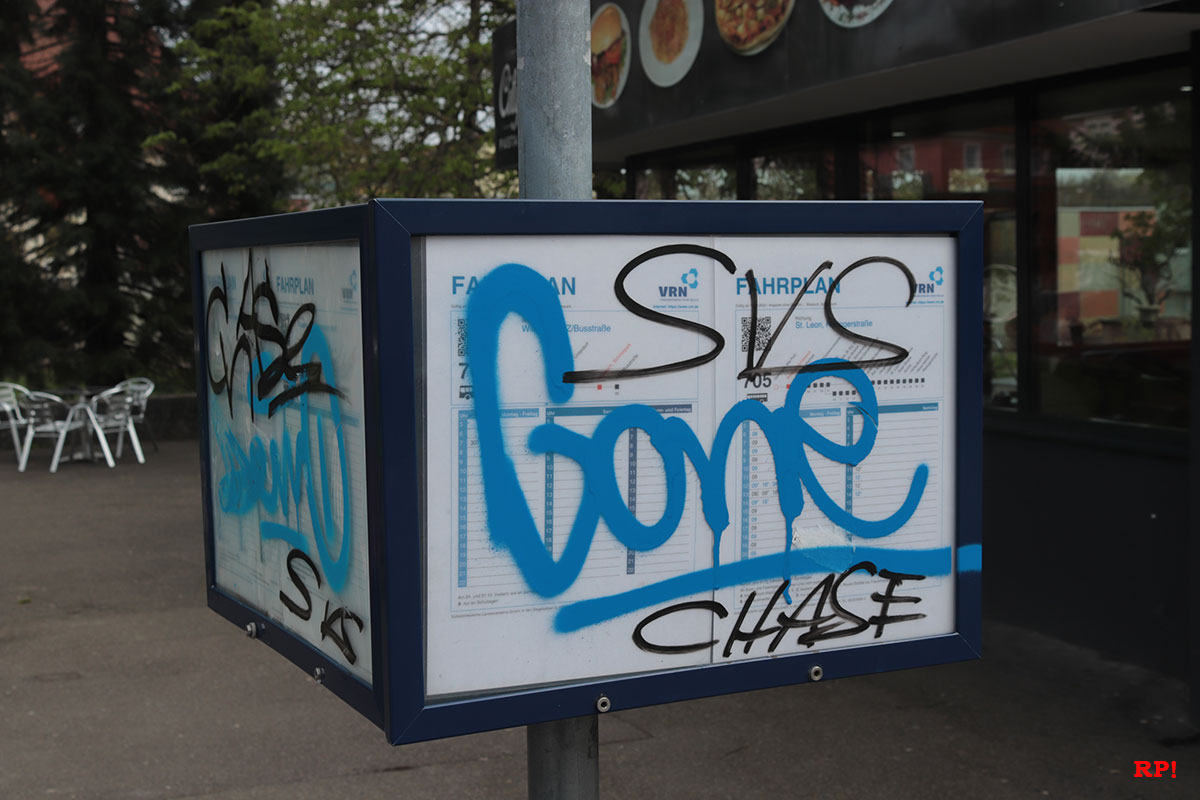 Neben den am Wochenende getätigten Straftaten in Dielheim und Wiesloch sind die mutmaßlichen Täter wohl Wiederholungstäter. So finden sich auch ältere Graffitis, welche zum Sprühen mehr Zeit beanspruchen und eher den Versuch darstellen ein richtiges Graffiti zu werden.
