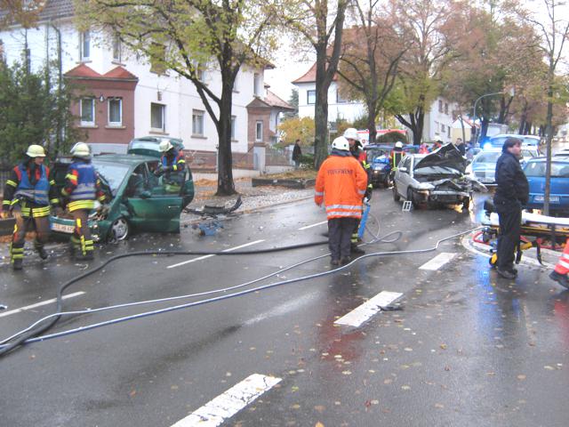 (mf) In der Heidelberger Straße ereignete sich am Samstag Nachmittag ein folgenreicher Verkehrsunfall. Im Bereich einer leichten Kurve prallten zwei PKW frontal aufeinander.