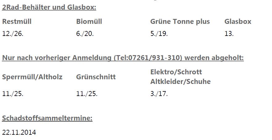 Informationen zur Abfallwirtschaft für Walldorf Abfuhr- und Sammeltermine auf einen Blick November 2014