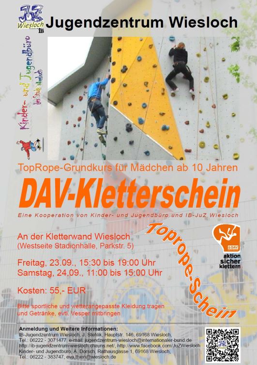 DAV-TopRope-Schein – Kletterkurs für Mädchen mit dem IB-Jugendzentrum Wiesloch