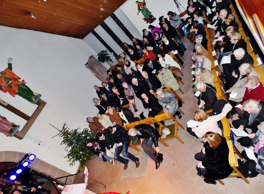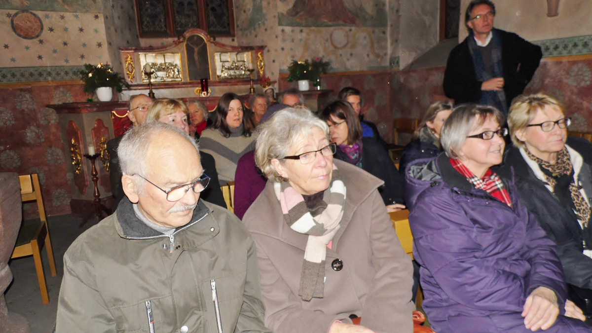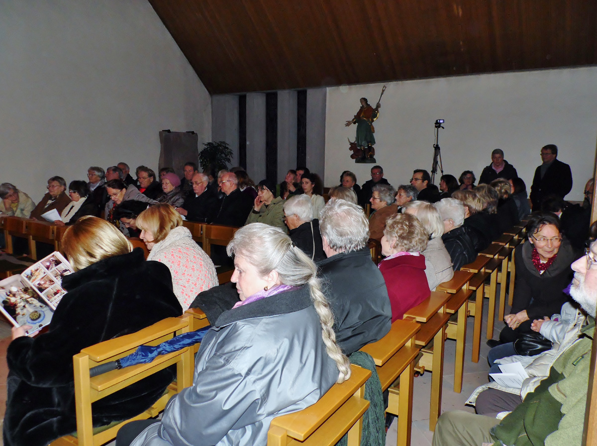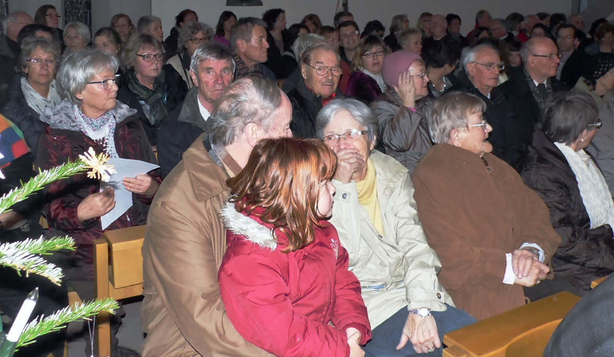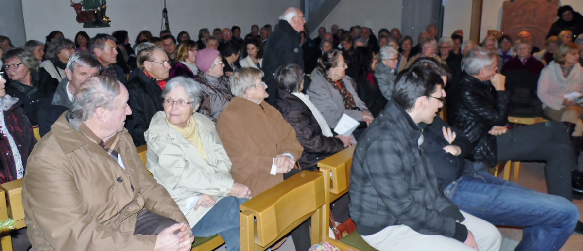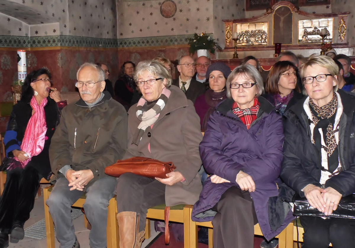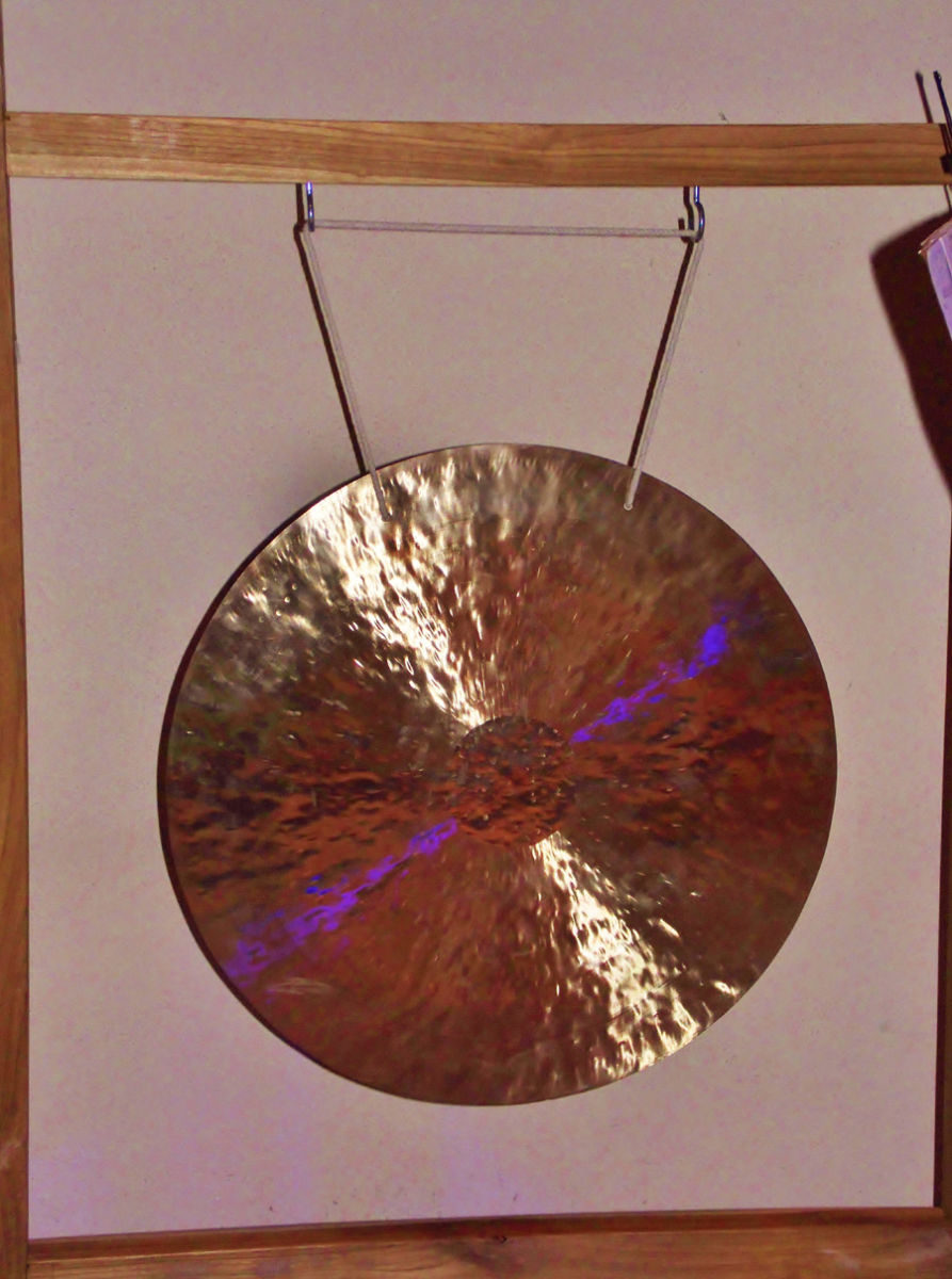 Nach den Begrüßungs-Worten von Pfarrer Hafner stellte Martina Pracht die unterschiedlichsten Klang-Instrumente durch Hörbeispiele vor, gefolgt von dem japanischen Volkslied: Horsewalker’s song und Improvisationen für Klangschalen und Gongs. Man spürte da bereits, dass die Zuhörer verzaubert lauschten.