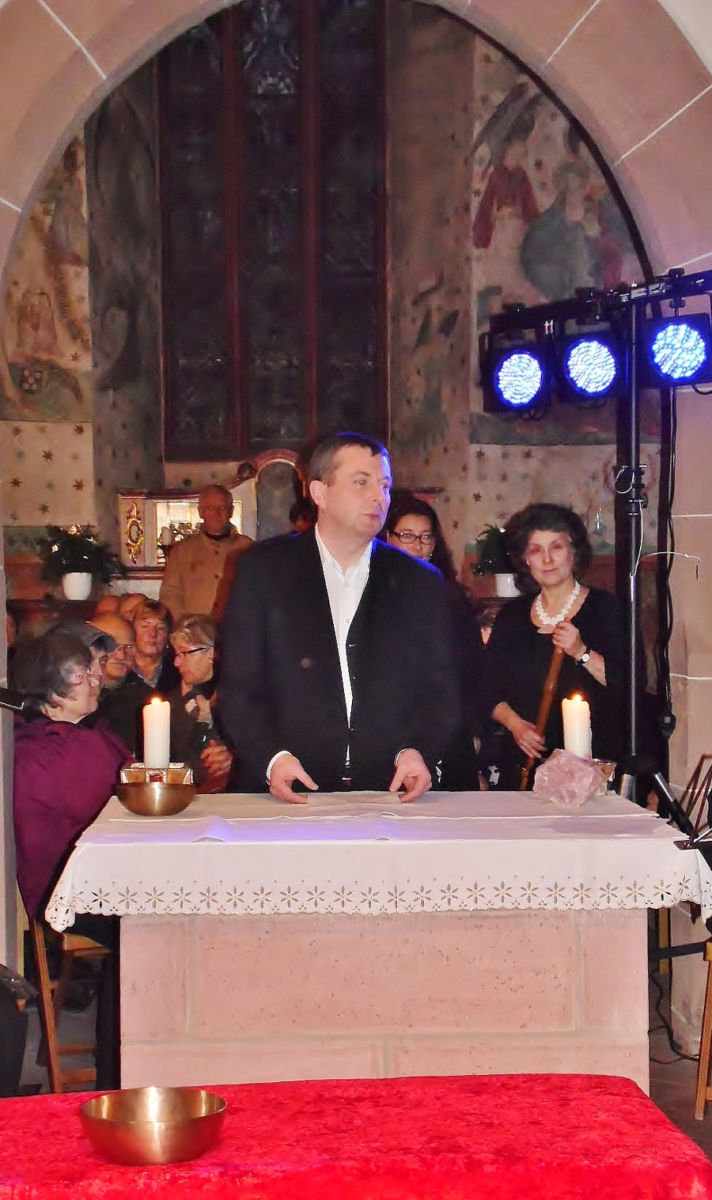 (vsk) In der bis auf den letzten möglichen Platz gefüllten Pankratius Kapelle in Altwiesloch genossen ca. 140 Zuhörer die Klangschalen, Trommeln und Flöten-Darbietungen der beiden Künstlerinnen, Ute Schleich und Martina Pracht.