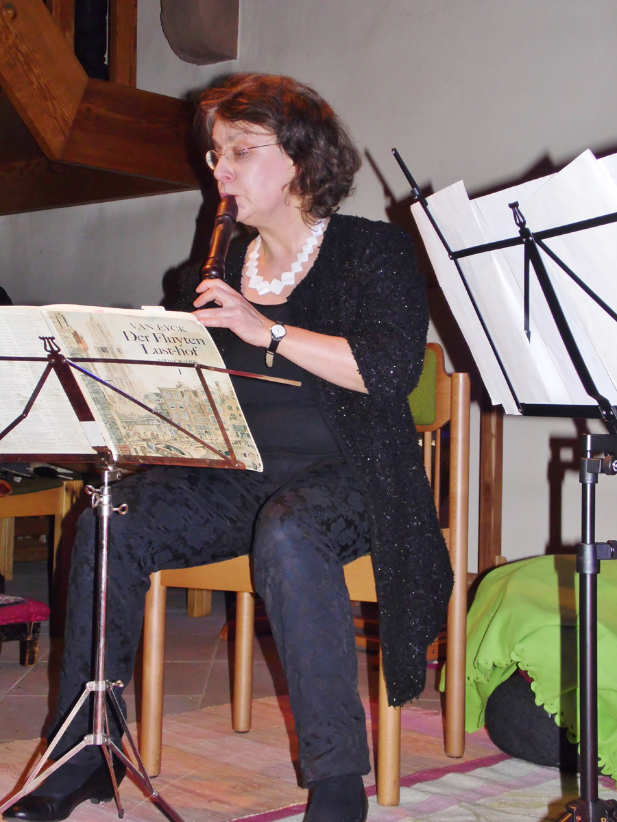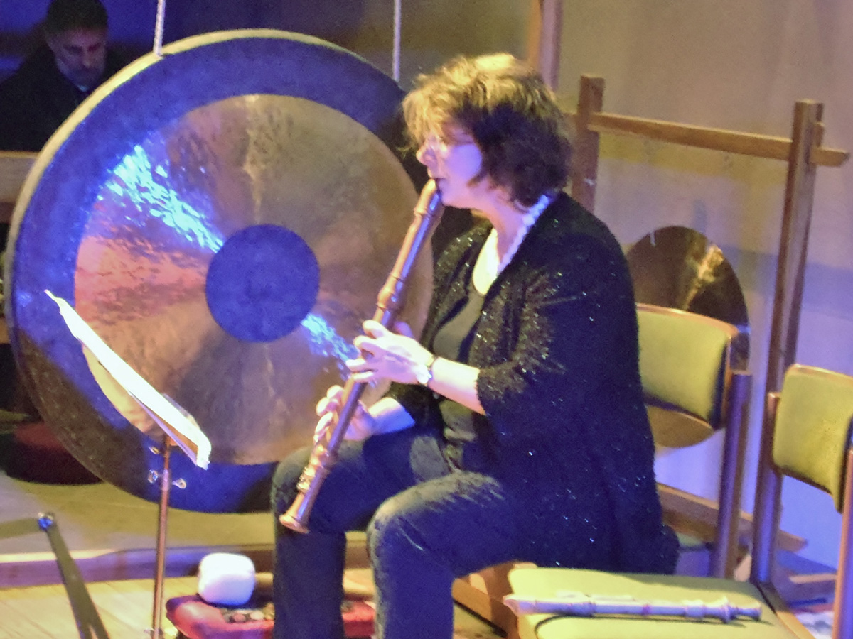 Es folgte die Schöpfung „Images“ des Kasseler Minimal Musik Künstlers Ulli Götte, geschrieben für Flöten und Klangschalen, die erst einmal aufgeführt worden war (Leimen, 08.12.13), bei dem Tenor-, Bass, Alt-Blockflöten zusammen