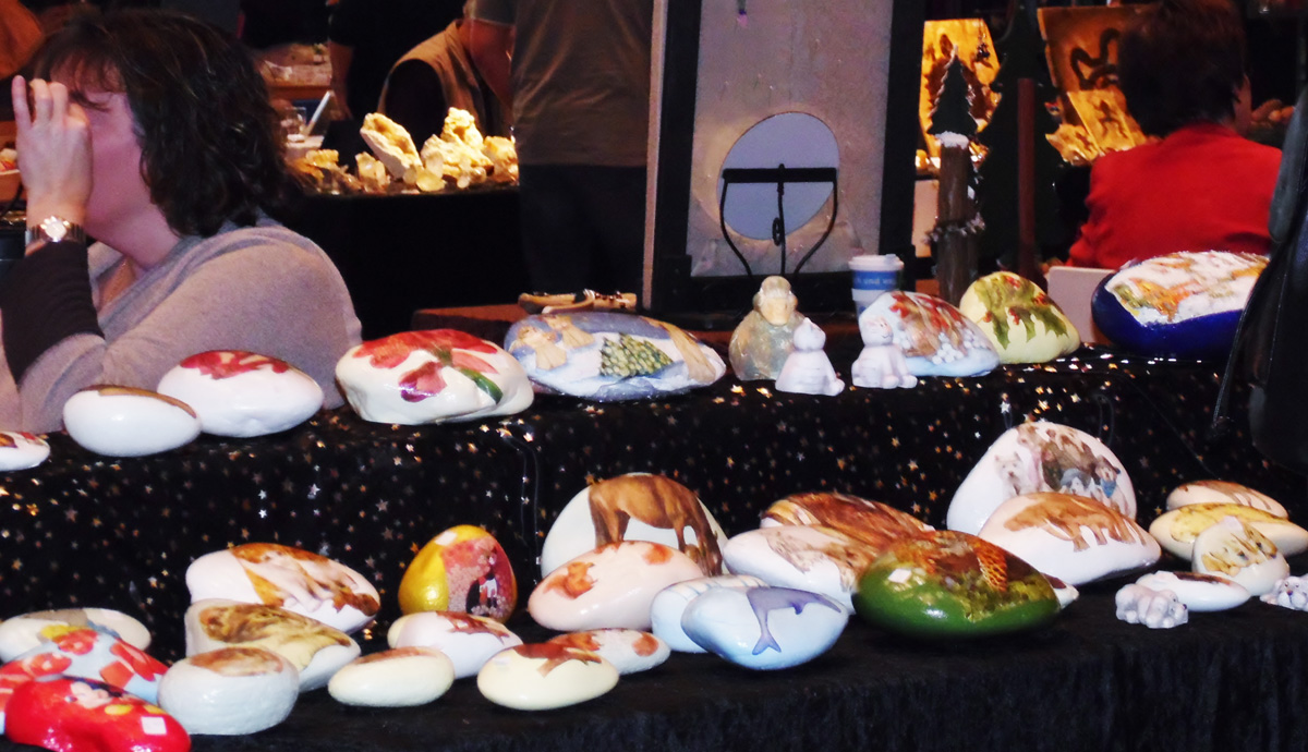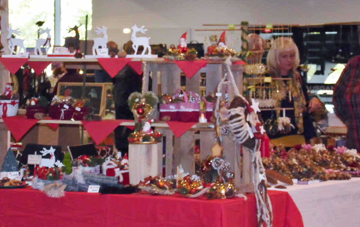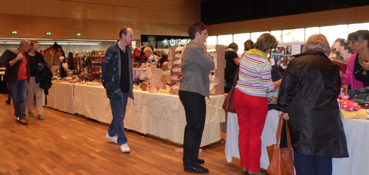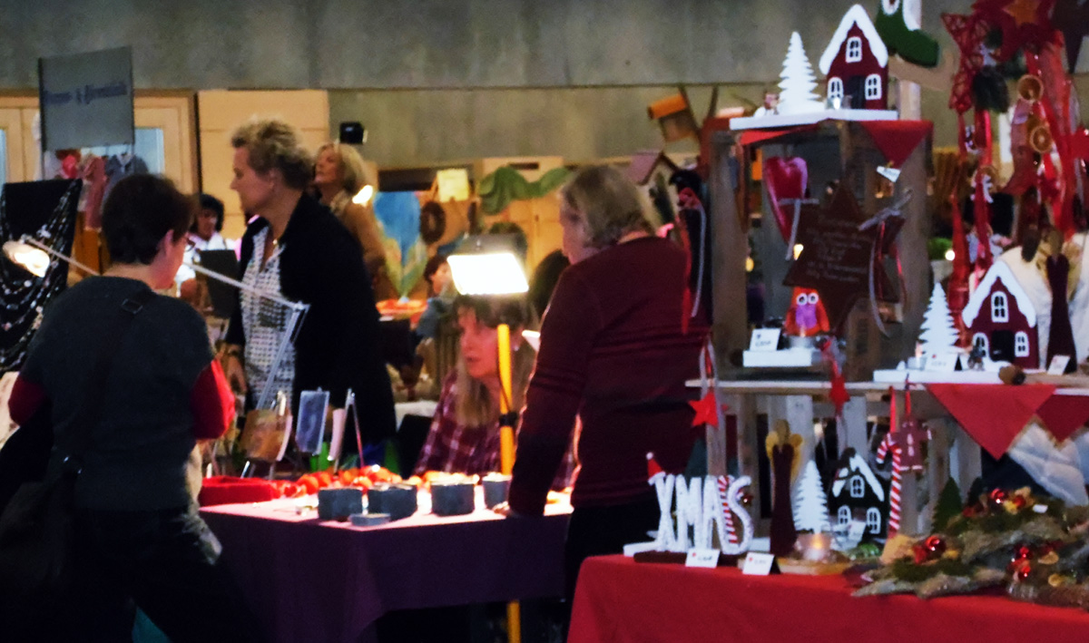 SAM_1126 Wer noch ein kleineres oder auch exklusiveres Geschenk oder ein Einzelstück für die eigene Wohnung sucht, wird beim Kunst- und Handwerker Markt bestimmt fündig. SAM_1121Da gibt es für fast jeden Geschmack und Geldbeutel das Passende. Zudem ist die Beratung freundlich und geduldig. Zum Sichten der neuen Schätze oder Energie Tanken eignet sich eine Pause bei Kaffee SAM_1129und Kuchen, Würstchen und Saft im an die Halle angrenzenden Cafe.