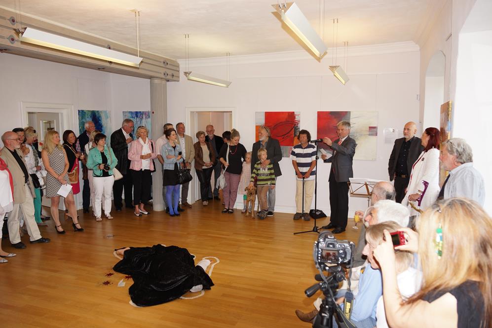 wasserschloss_03Mit dieser außergewöhnlichen Performance überraschten die Künstler Crystal Schüttler (Tanz) und Claus Rosenfelder (Klarinette und Saxophone) die zahlreich erschienen Besucher am Vernissagetag der 2. Ausstellung im Wasserschloss Bad Rappenau. Unter den Klängen bekannter Krimimelodien bewegte sich das Künstlerduo akrobatisch und verzaubernd durch die Räumlichkeiten der Ausstellung.