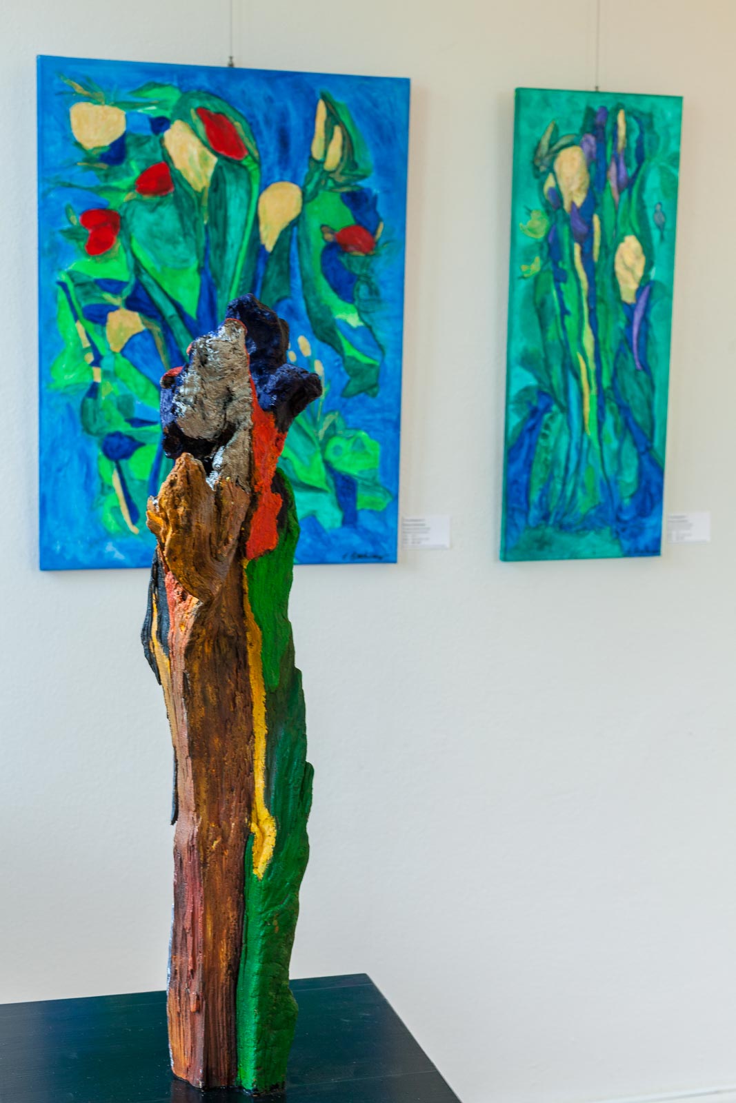 Michael Maier der 2. Vorsitzende der Künstlergruppe spann den Faden „Tatort“ in seiner launigen Laudatio weiter: Nun liegt es an Ihnen, sich auf spannende Spurensuche zu begeben, den Tatort mit seinen Bildwerken und Skulpturen genau zu inspizieren und auch kleine unscheinbare Details unter die Lupe zu nehmen.