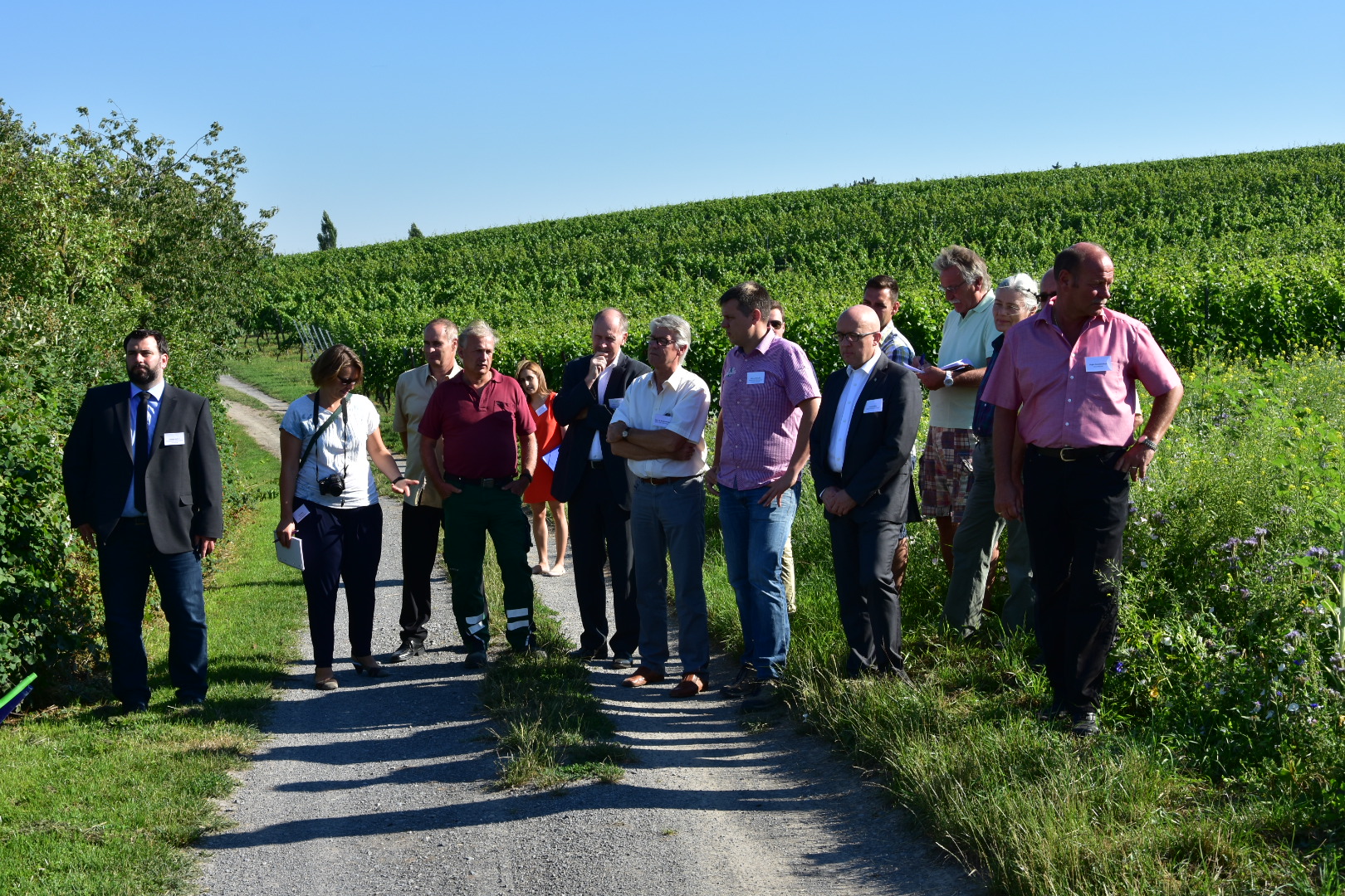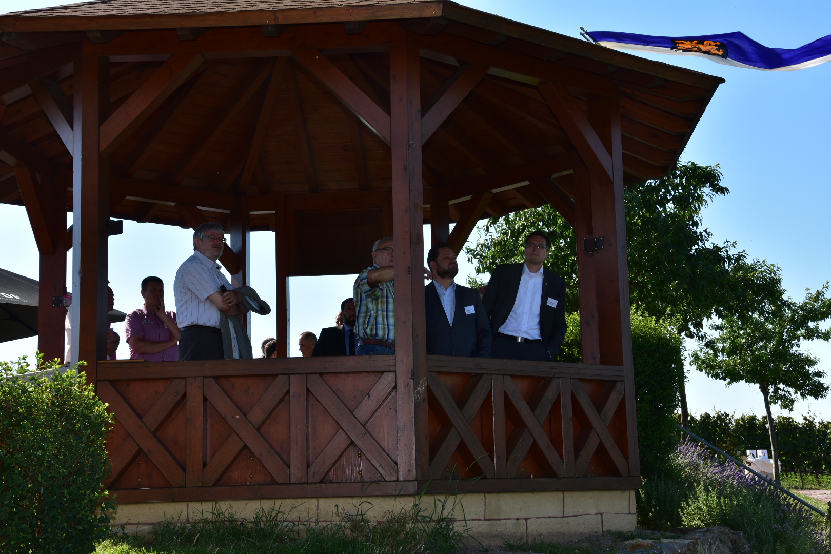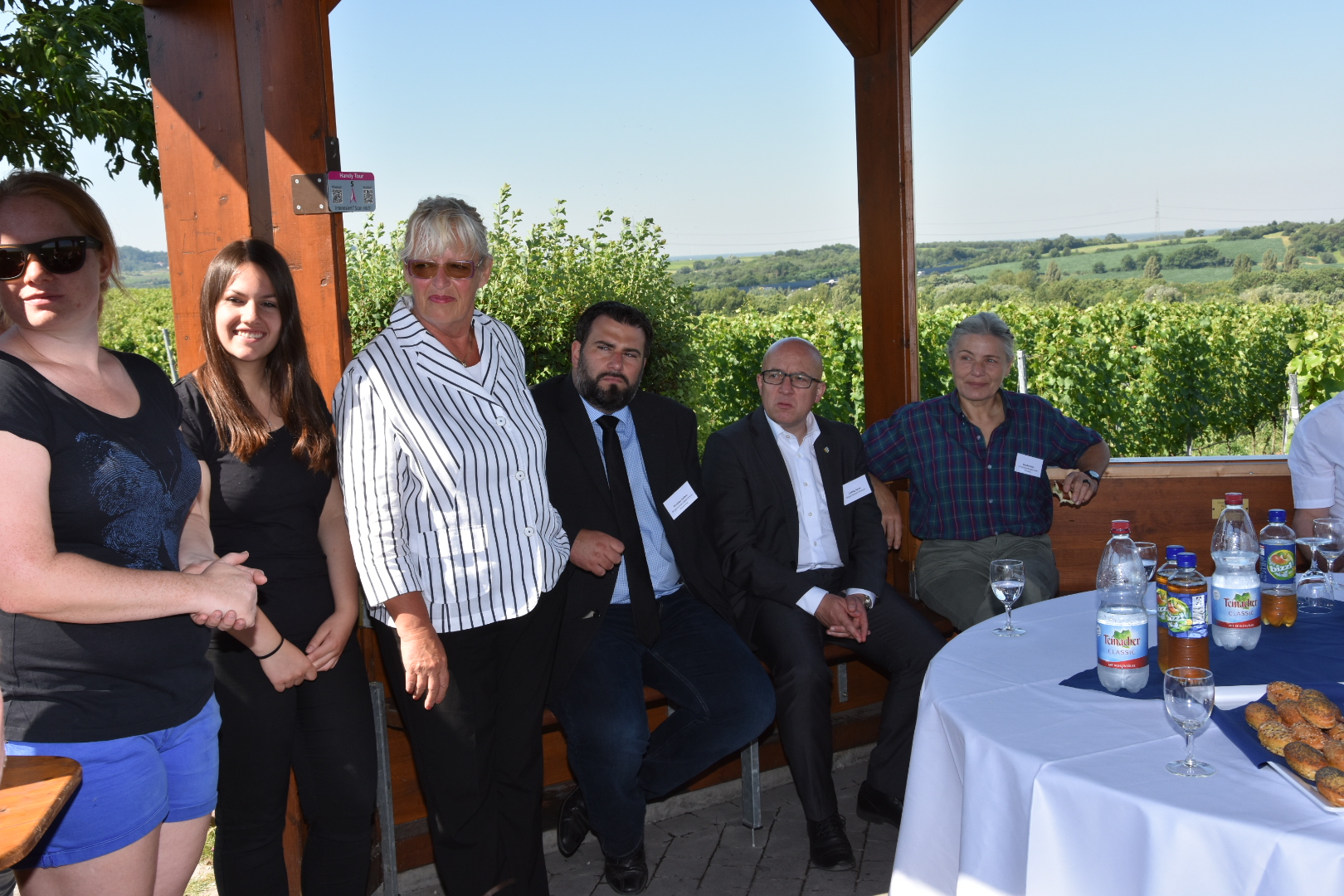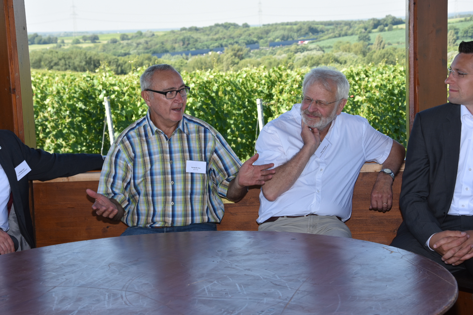 Bei schönstem Sommerwetter konnten Oberbürgermeister Franz Schaidhammer, die beiden Landtagsabgeordneten Karl Klein und Kai Schmidt—Eisenlohr, sowie Bürgermeisterstrellvertreter Christian Kollenz aus Rauenberg den Gast aus Stuttgart am Winzerkeller in Wiesloch begrüßen. Darüber hinaus waren der Initiator Rainer Kircher, Bürgermeister Ludwig Sauer, Mitglieder der Verwaltung und Vertreter des Winzerkellers zu diesem Besichtigungstermin gekommen.