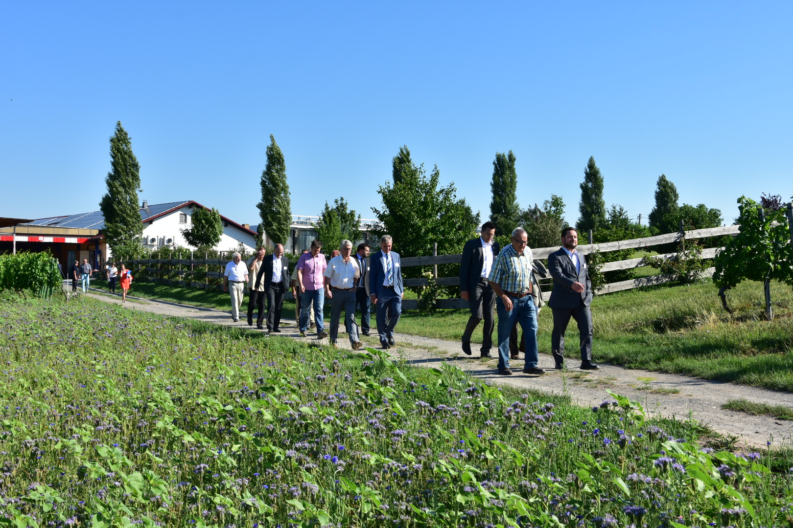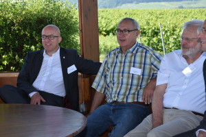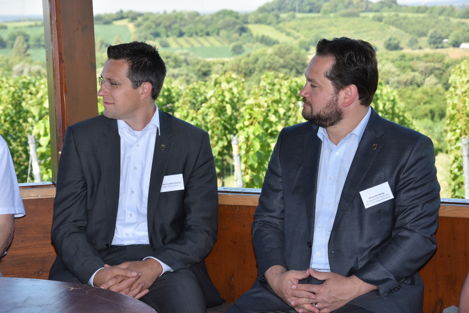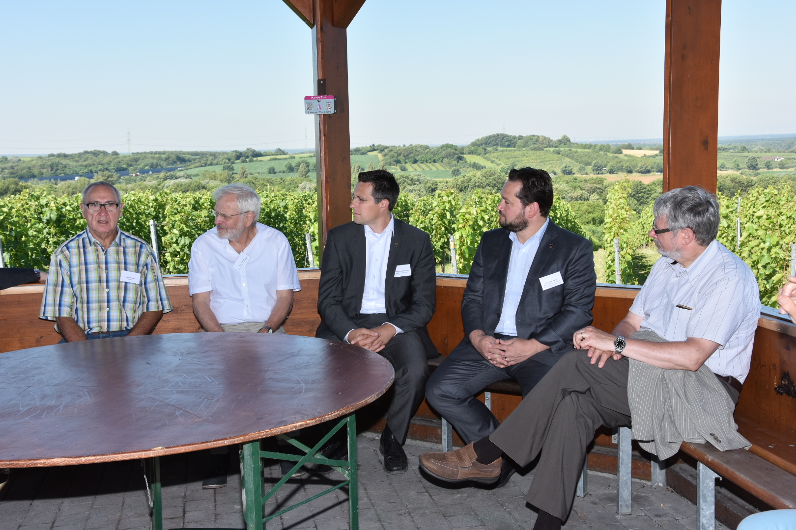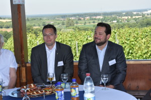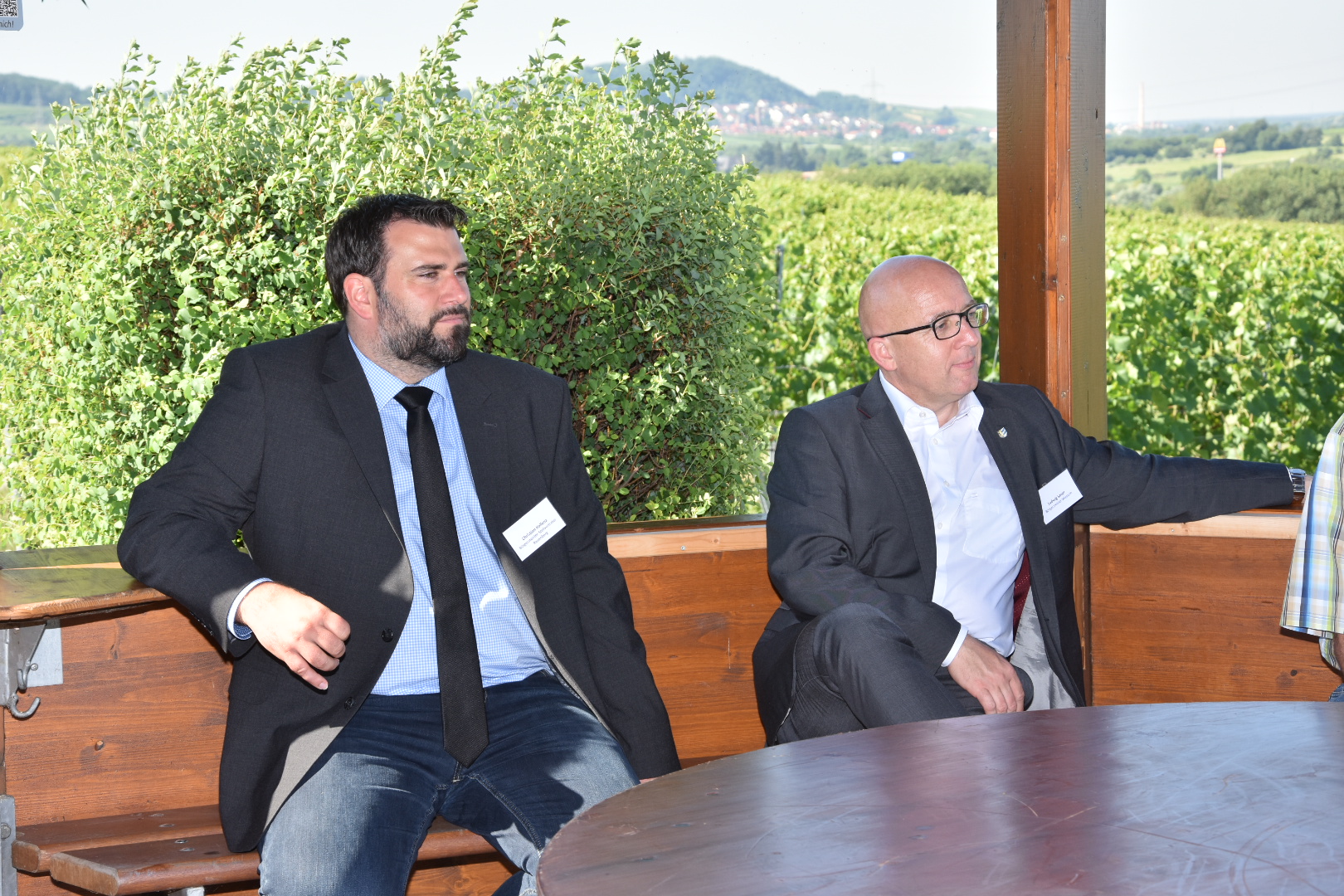 Bei schönstem Sommerwetter konnten Oberbürgermeister Franz Schaidhammer, die beiden Landtagsabgeordneten Karl Klein und Kai Schmidt—Eisenlohr, sowie Bürgermeisterstrellvertreter Christian Kollenz aus Rauenberg den Gast aus Stuttgart am Winzerkeller in Wiesloch begrüßen. Darüber hinaus waren der Initiator Rainer Kircher, Bürgermeister Ludwig Sauer, Mitglieder der Verwaltung und Vertreter des Winzerkellers zu diesem Besichtigungstermin gekommen.