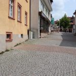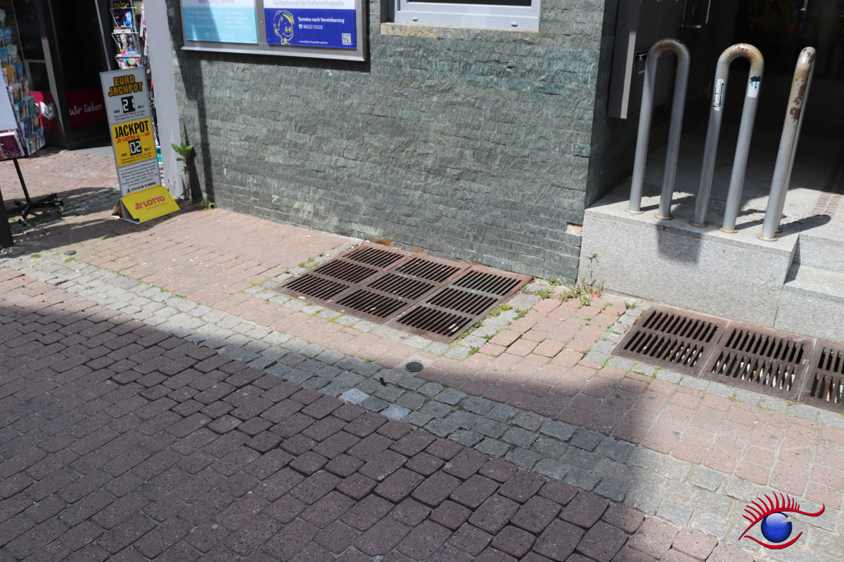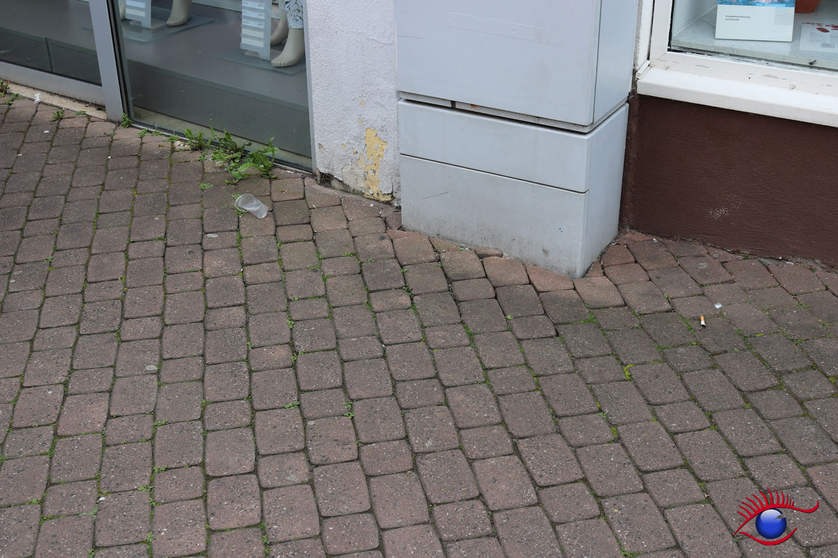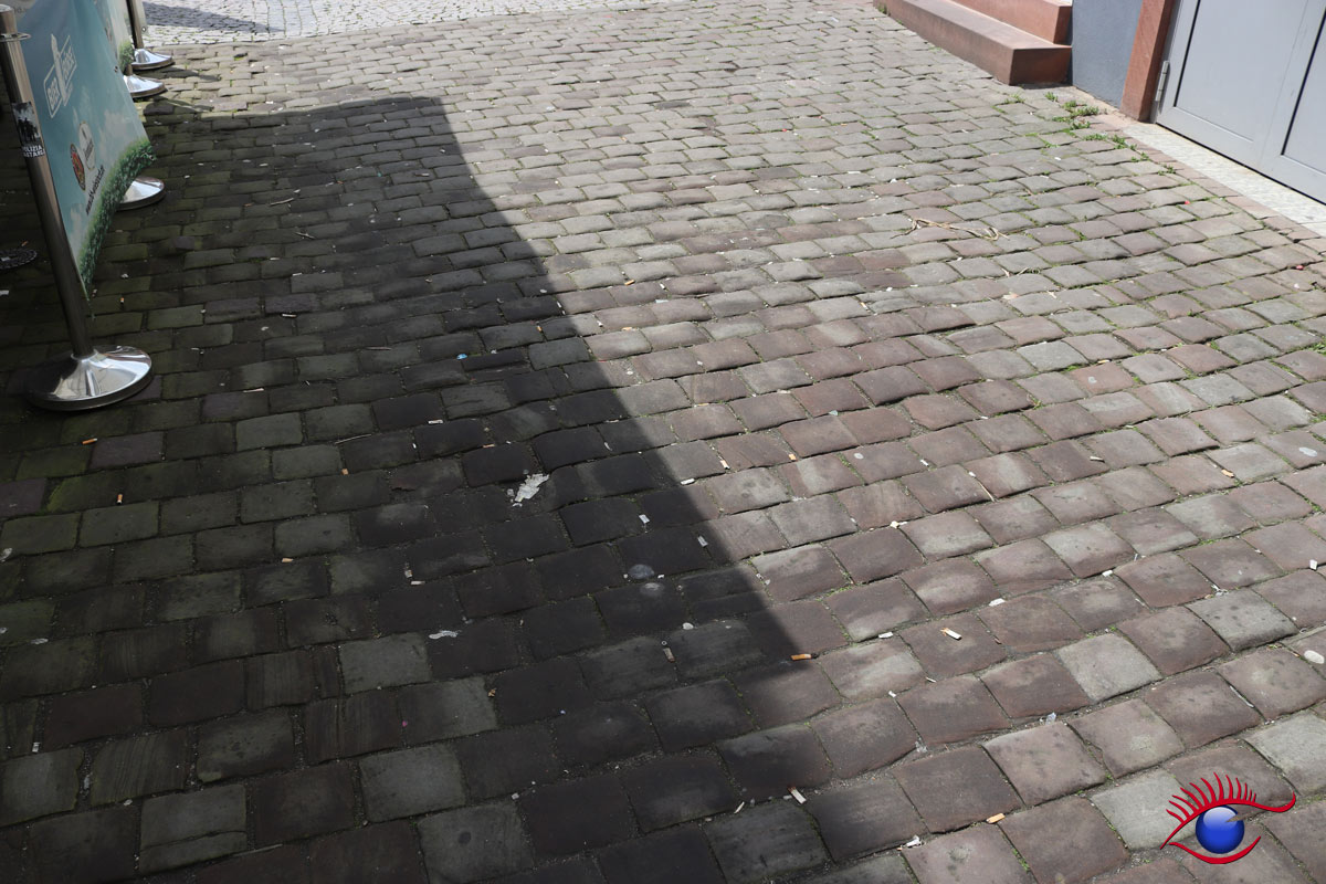 Mein Weg führte mich durch die auffallend leere Fußgängerzone Richtung Rathaus. Die Pflastersteine waren übersät mit weiteren Zigarettenstummeln und jeder Menge anderem Müll. Bei den rar gesäten Abfalleimern jedoch kein Wunder. Selbiges spiegelte sich in der Marktstraße höhe Bierbörse wieder.