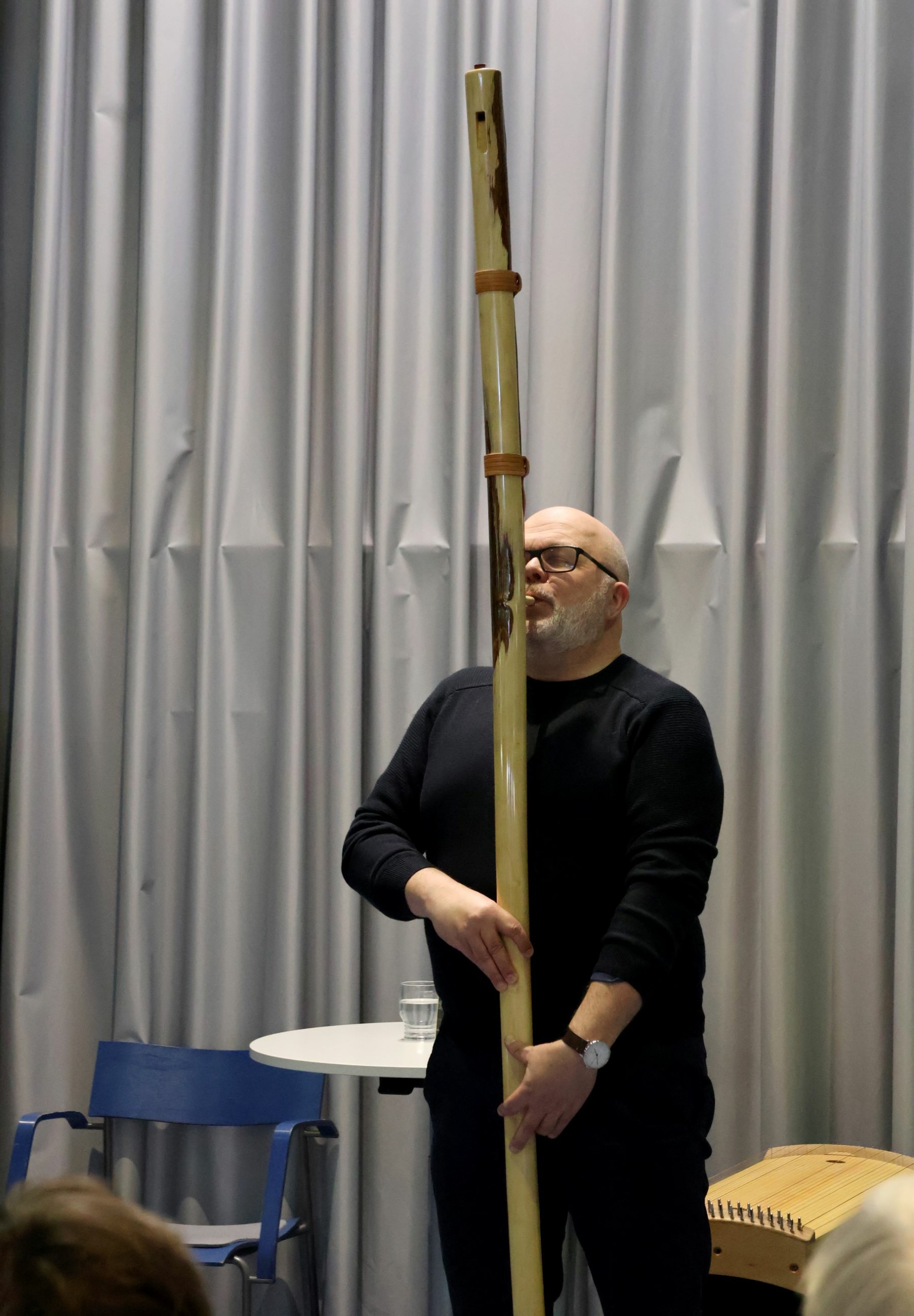 Pattis‘ Ehemann Dietmar Elsler begleitet die Lesung musikalisch, mit verschiedenen Instrumenten wie einer slowakischen Hirtenflöte, einer Zungentrommel und einer Kalimba. „Ich habe das Buch sehr oft gelesen und mit meiner Frau darüber gesprochen“, gibt Elsler Einblicke in seine Motivation, die Lesung nicht einfach nur musikalisch zu untermalen, sondern zu vertonen.