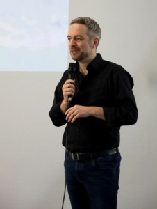 „Stellt gerne Fragen, auch wenn sie nicht direkt mit dem Roman zu tun haben“, so Schäuble, der Politikwissenschaft studiert und mehre Sachbücher zum Thema Nahost sowie Jugendromane geschrieben hat. Er habe viele Jahre als Journalist gearbeitet, stellt sich Schäuble vor. Daher sei ihm auch bei seinen Büchern die Recherche sehr wichtig. Sein Roman „Godland“ spielt in der Zukunft. „Es ist eine Dystopie“, präzisiert der Autor, „aber was heißt das eigentlich?“ Einige Schüler melden sich und vermuten „eine Zukunft mit negativer Prägung“. Im Gegensatz zur Utopie, in der alles gut ist, stimmt Schäuble zu und nimmt sein junges Publikum mit in die dystopische Welt seines Romans. Die Ausgangslage: Ein großer Tech-Konzern verspricht der Menschheit ein Leben ohne Krankheiten, in Frieden und perfekten Umweltbedingungen. Der Haken: Dafür müssen sich die Menschen einer Prozedur unterziehen, mit der  ihr Verstand in eine virtuelle Welt – Godland – übertragen wird. Der menschliche Körper wird danach beseitigt. Wer sich das nicht leisten kann, arbeitet für 20 Jahre auf einer der Serverinseln und wird danach mit einem Upload nach Godland belohnt.