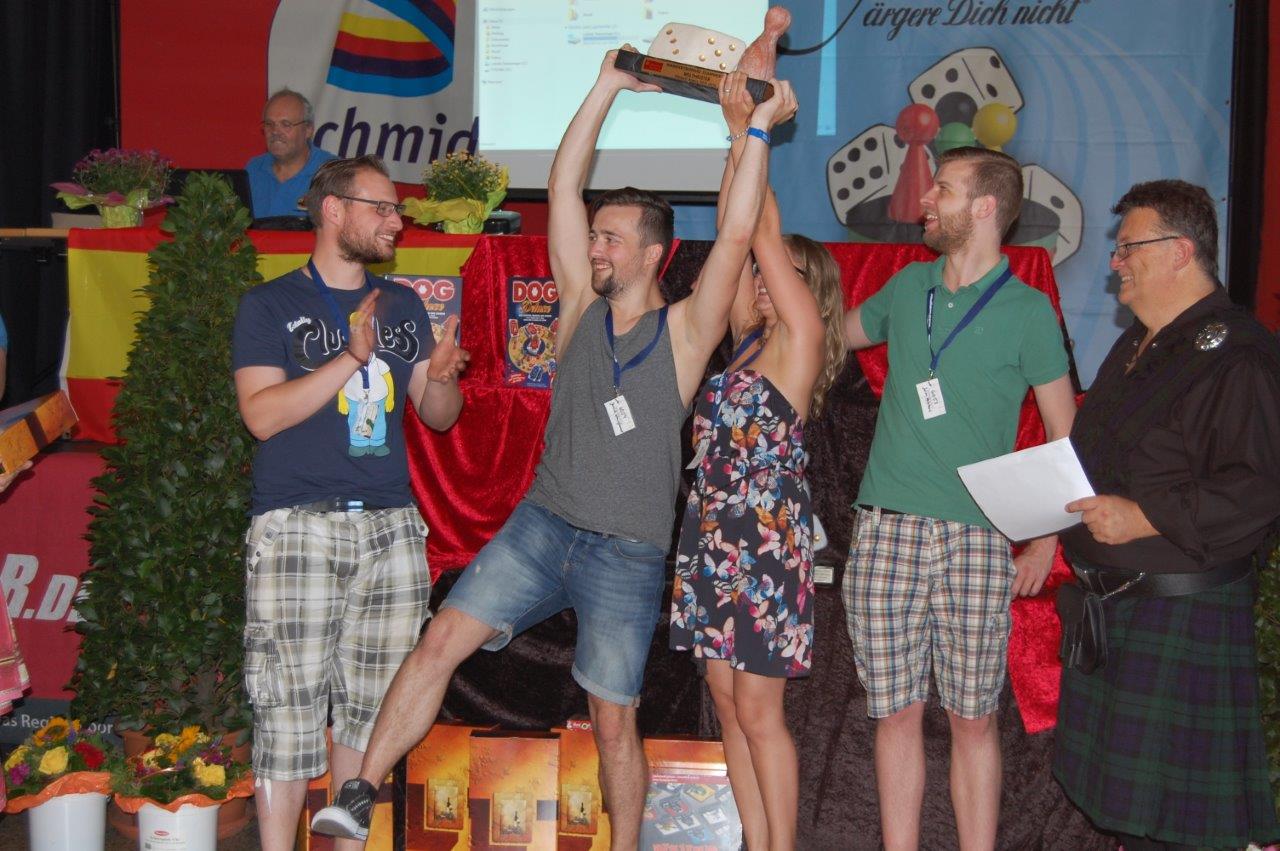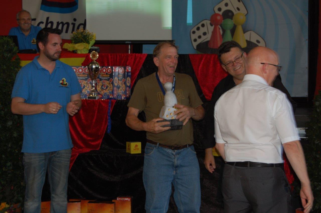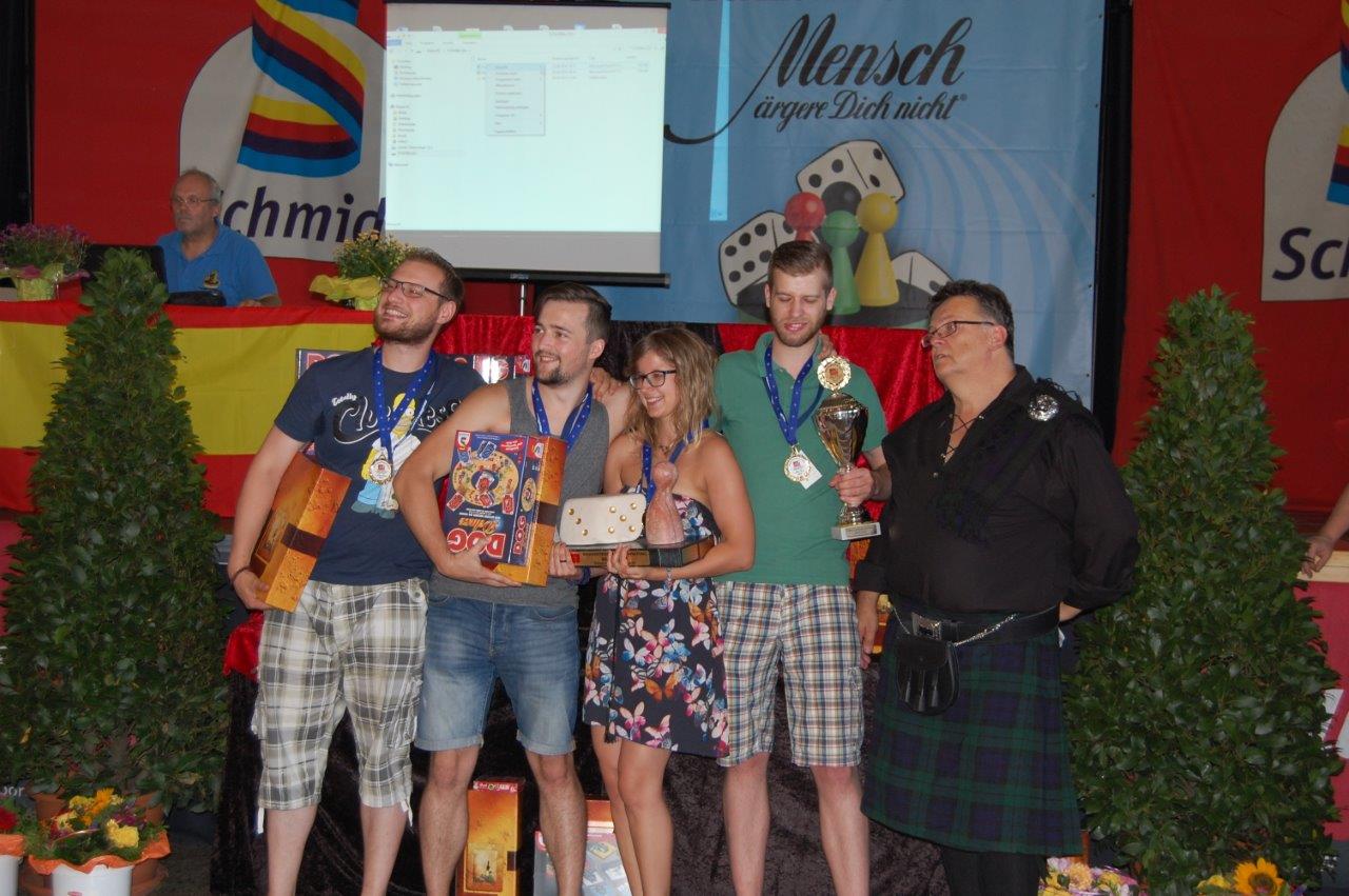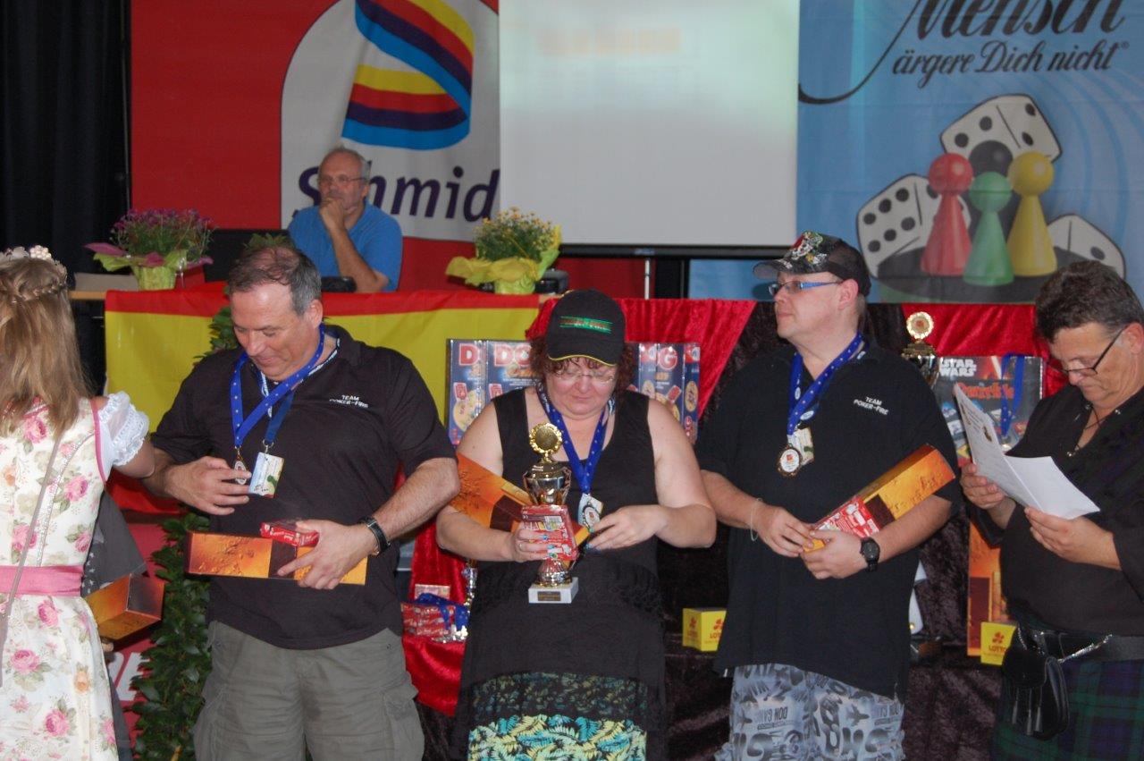 Der Fairneß-Cup „für die Spielerin, die alle anderen Spieler ans sich vorbei ziehen gelassen hat“ mit einem erreichten Punkt wurde Lydia Mollenhauer übergeben. Platz eins und damit Gold für die Einzelbewertung erhielt Udo Zimmermann aus Meckesheim. Das Mannschaft der Würfelterroristen belegte für die Teambewertung den ersten Platz, was mit einem lauten Siegesschrei beantwortet wurde.