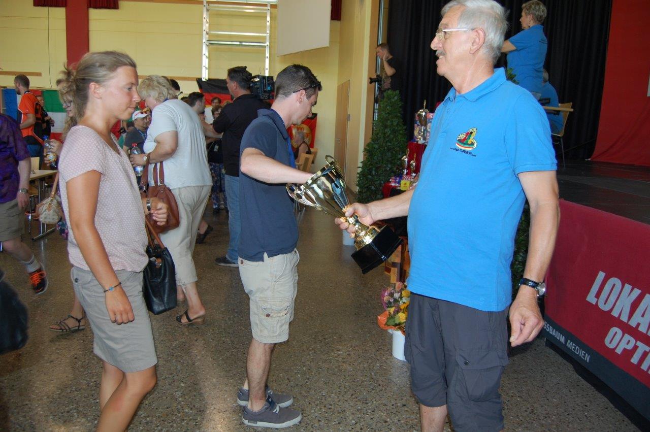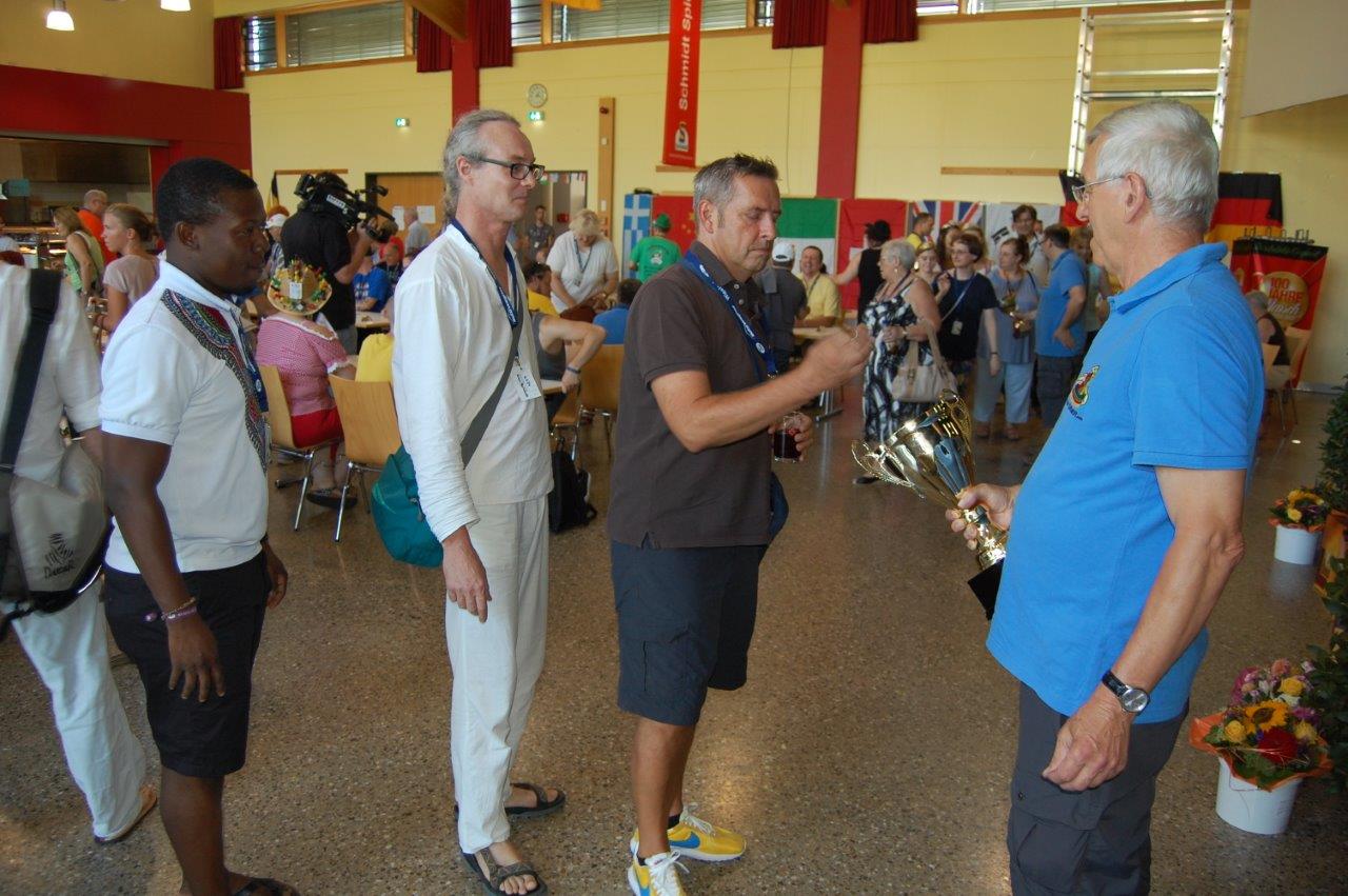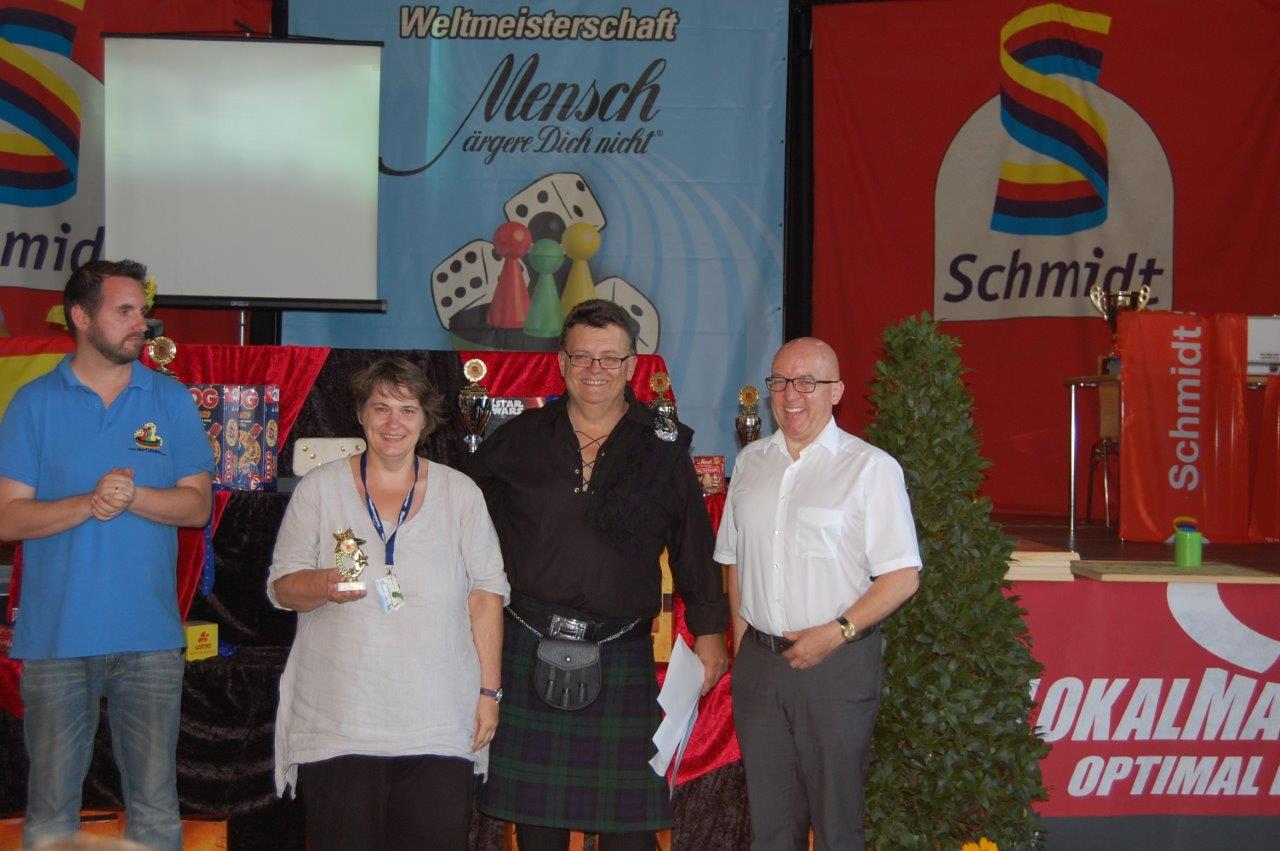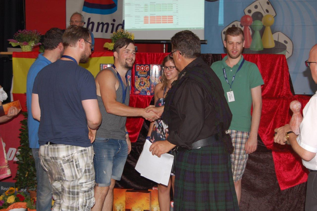 Der Fairneß-Cup „für die Spielerin, die alle anderen Spieler ans sich vorbei ziehen gelassen hat“ mit einem erreichten Punkt wurde Lydia Mollenhauer übergeben. Platz eins und damit Gold für die Einzelbewertung erhielt Udo Zimmermann aus Meckesheim. Das Mannschaft der Würfelterroristen belegte für die Teambewertung den ersten Platz, was mit einem lauten Siegesschrei beantwortet wurde.