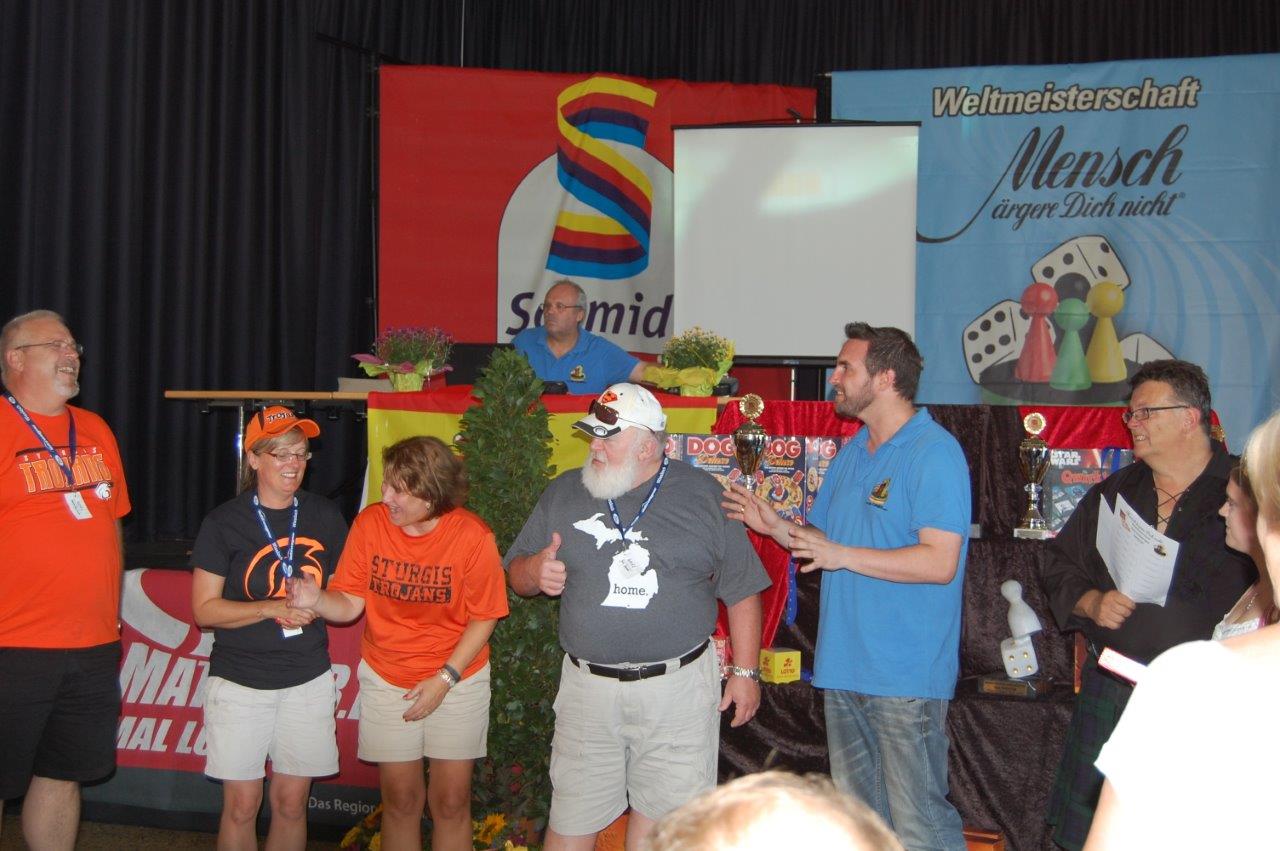 Nachdem ausreichend Bilder von den gekürten Spielern und Mannschaften gemacht wurde, gab es noch eine kleine Tombola mit unterschiedlichen Brett –und Kartenspielen, für all diejenigen, die nicht ganz so viel Glück hatten und vorerst leer ausgingen. Danach hieß es: „Danke dass ihr da wart“. Man sieht sich in zwei Jahren wieder wenn es heißt: Herzlich Willkommen bei der Weltmeisterschaft im „Mensch ärgere dich nicht“.