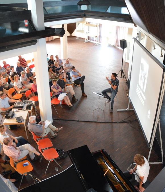 Vom Besuch einer solchen Nachsorgeeinrichtung berichtete der Sänger und Pianist Johannes Falk und schilderte seine Erfahrungen, wie Kunst bei der Überwindung der schwersttraumatisierten Opfer helfen kann.