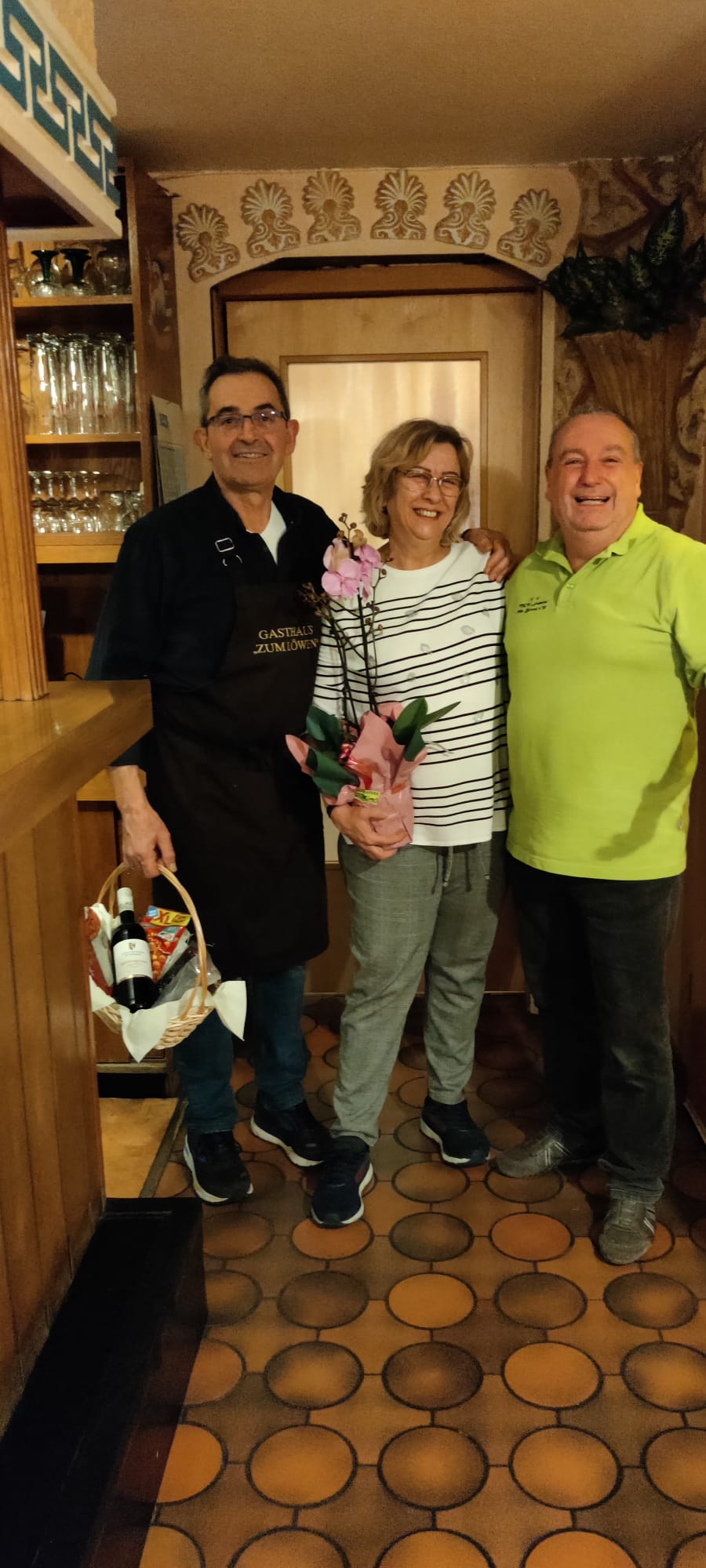 Seit vielen Jahren führten die Beiden „den Löwen“ und wurden im Laufe der Zeit zu guten Freunden. Nicht nur aber hauptsächlich an Dienstagen nach der Chorprobe gelang es ihnen immer wieder, die lautstarke Frohsinn-Truppe mit frischen Getränken und wirklich leckerem Essen zufrieden zu stellen. „Das ist irgendwie unser zweites Vereinsheim“, hörte man es wiederholt von den Sängern und das ist sicherlich ein großer Vertrauensbeweis.