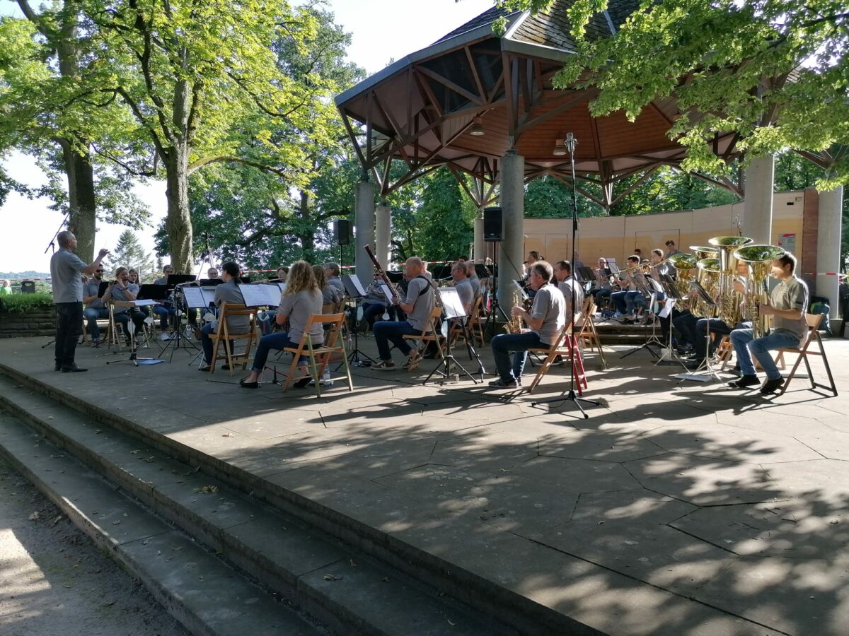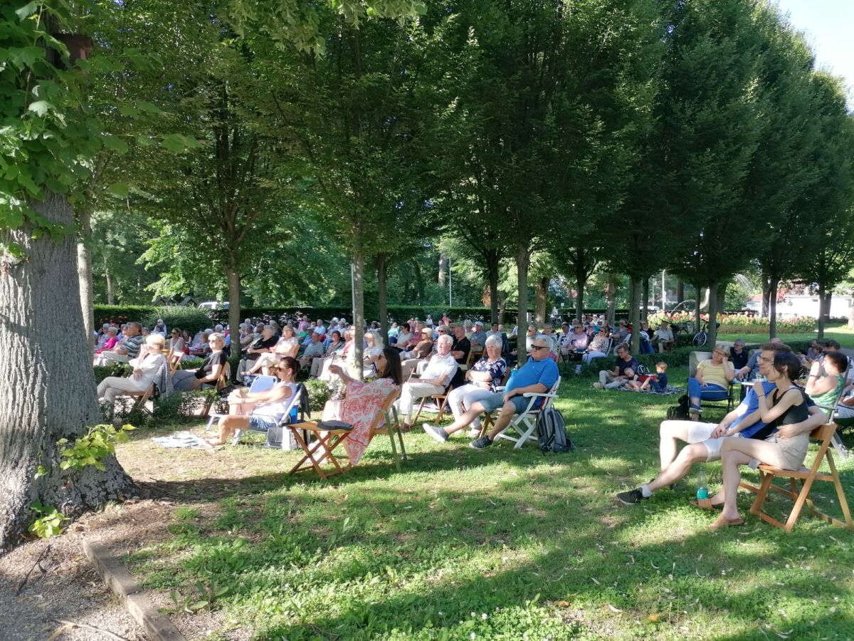 Nach den katastrophalen Unwettertagen vorher konnten sich alle über einen herrlichen Sommerabend freuen, der es auch ermöglichte, dieses Konzert Corona-konform durchzuführen.