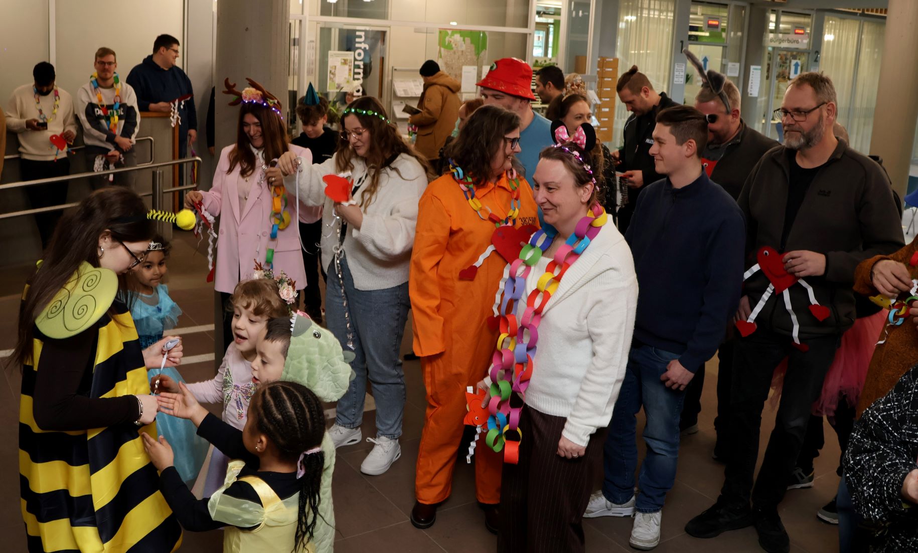 Die drei städtischen Kindergärten haben am schmutzigen Donnerstag eine schöne Tradition fortgeführt: Gemeinsam mit den Erzieherinnen stürmten die Vorschulkinder das Rathaus. Natürlich waren alle verkleidet: Es gab Prinzessinnen, Bienen und den einen oder anderen Superhelden wie Spider-Man oder Superman. Auch im Rathaus hatten sich einige Mitarbeiterinnen und Mitarbeiter zu diesem Anlass in Schale geworfen.