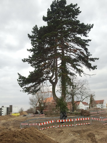 Der vorhandene Baumbestand musste zum Teil fallen, weil einige Bäume in der Böschung des neuen Bachbet-tes am Leimbach standen. Trotzdem können ein paar schöne alte Baumexemplare erhalten und in den neuen Park am Leimbach integriert werden.
