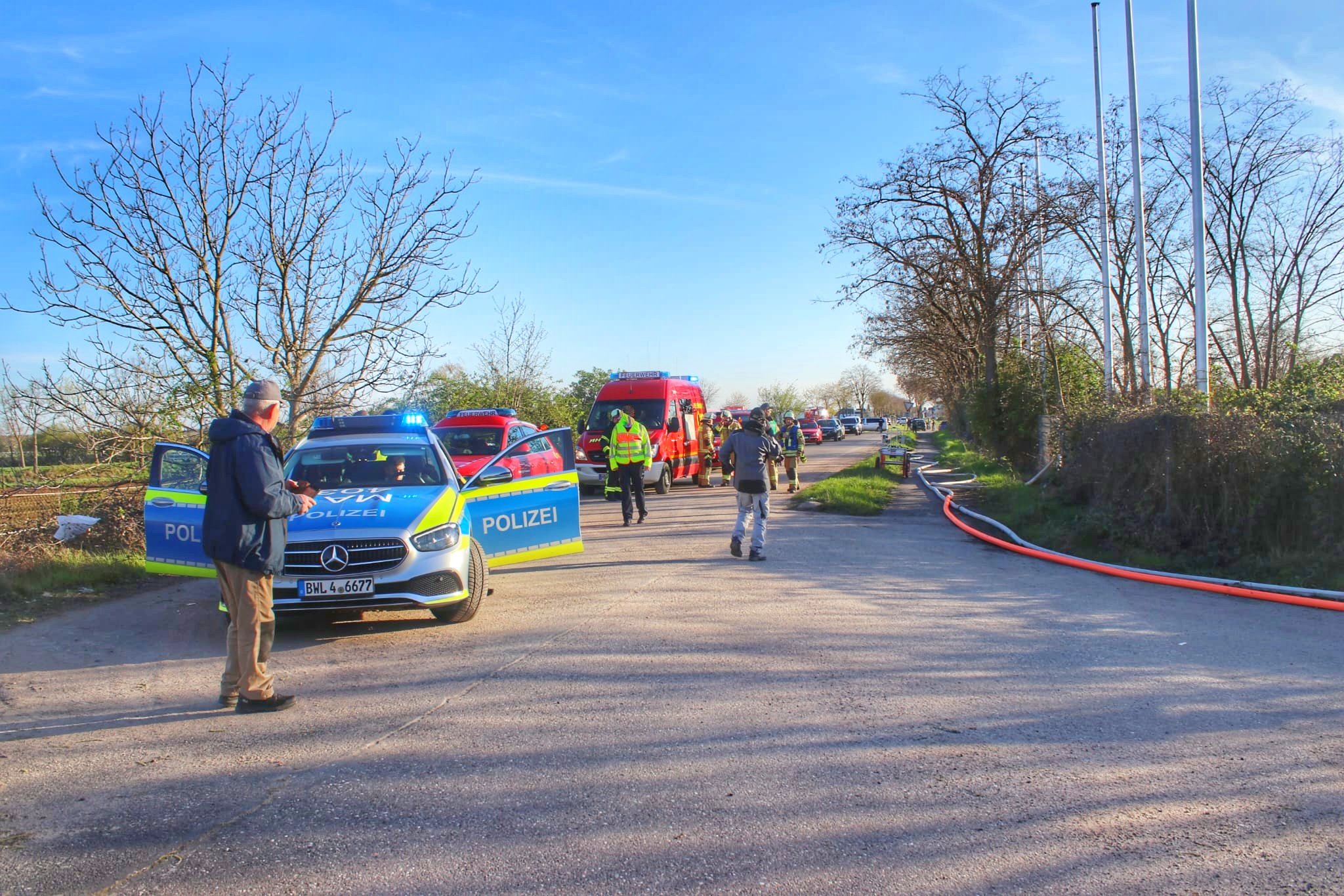 Etwa 100 Feuerwehrleute mit 22 Fahrzeugen aus verschiedenen Ortschaften, darunter Neulußheim, Altlußheim, Hockenheim, Ketsch und Walldorf, waren im Einsatz.