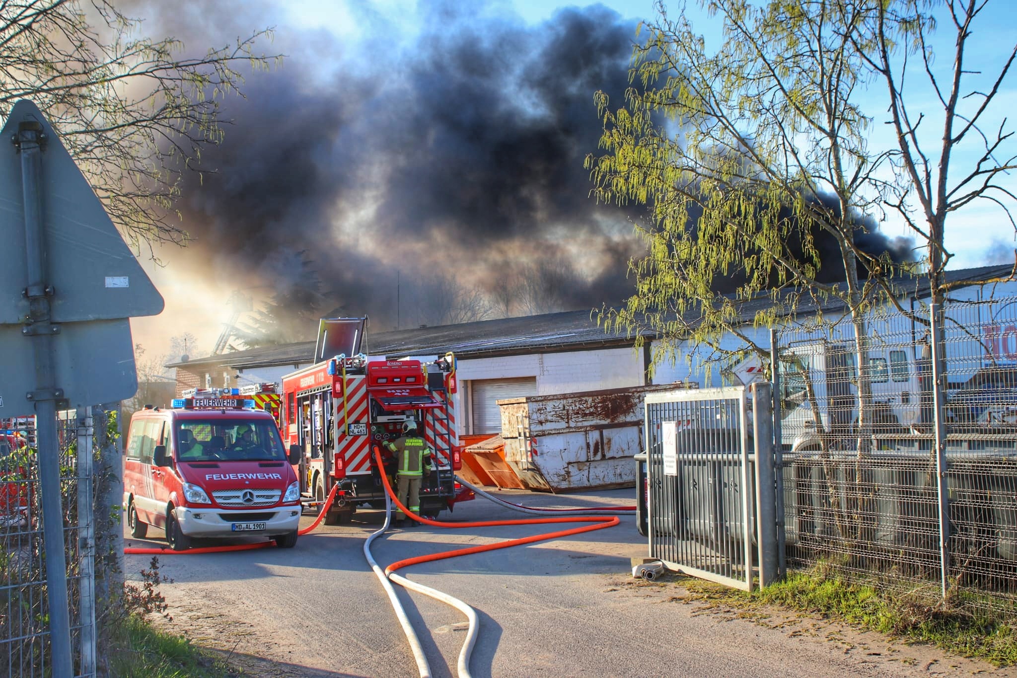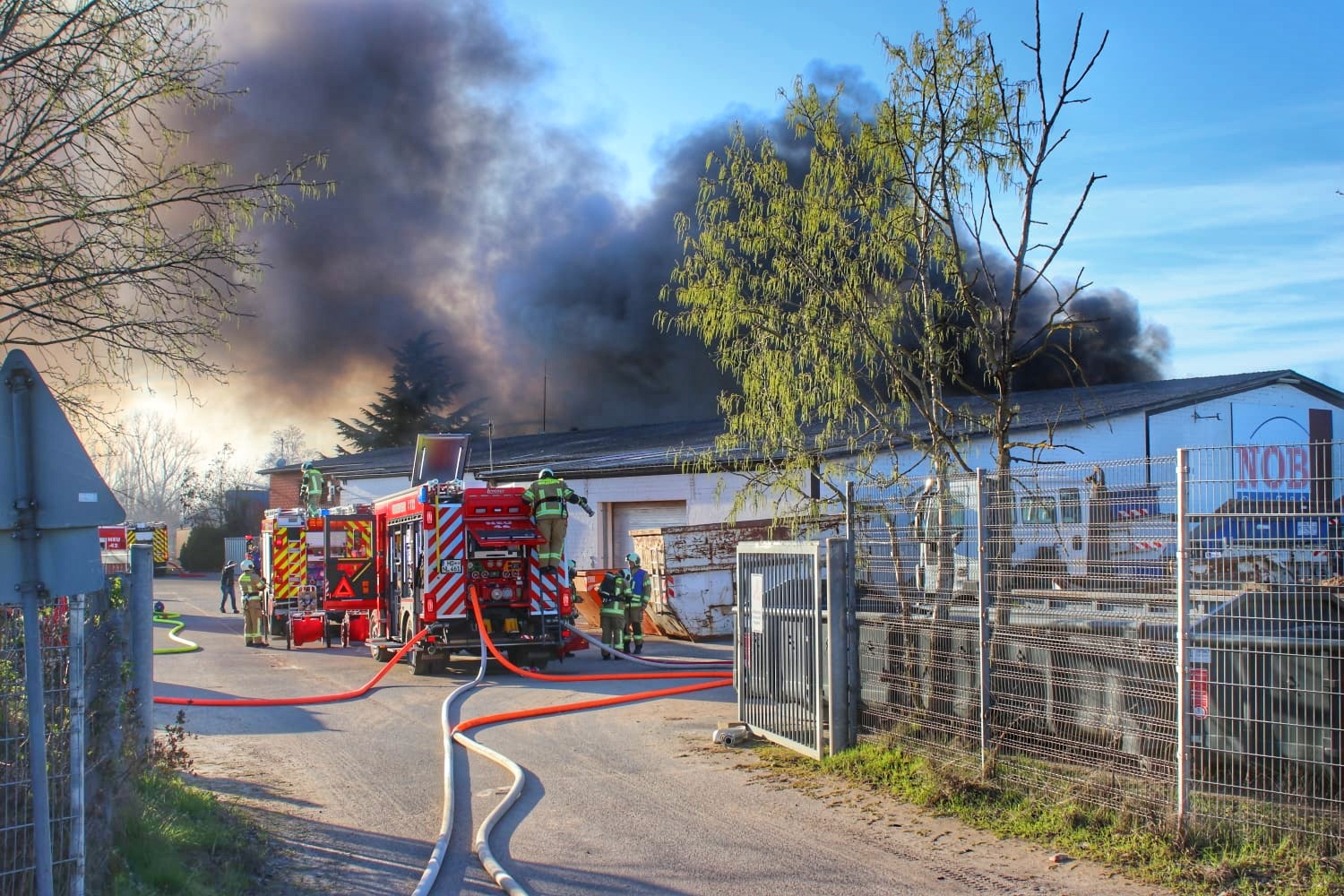 Neulußheim/Hockenheim: Lagerhalle in Vollbrand, meterhohe Rauchsäule weit sichtbar – über hundert Einsatzkräfte im Einsatz