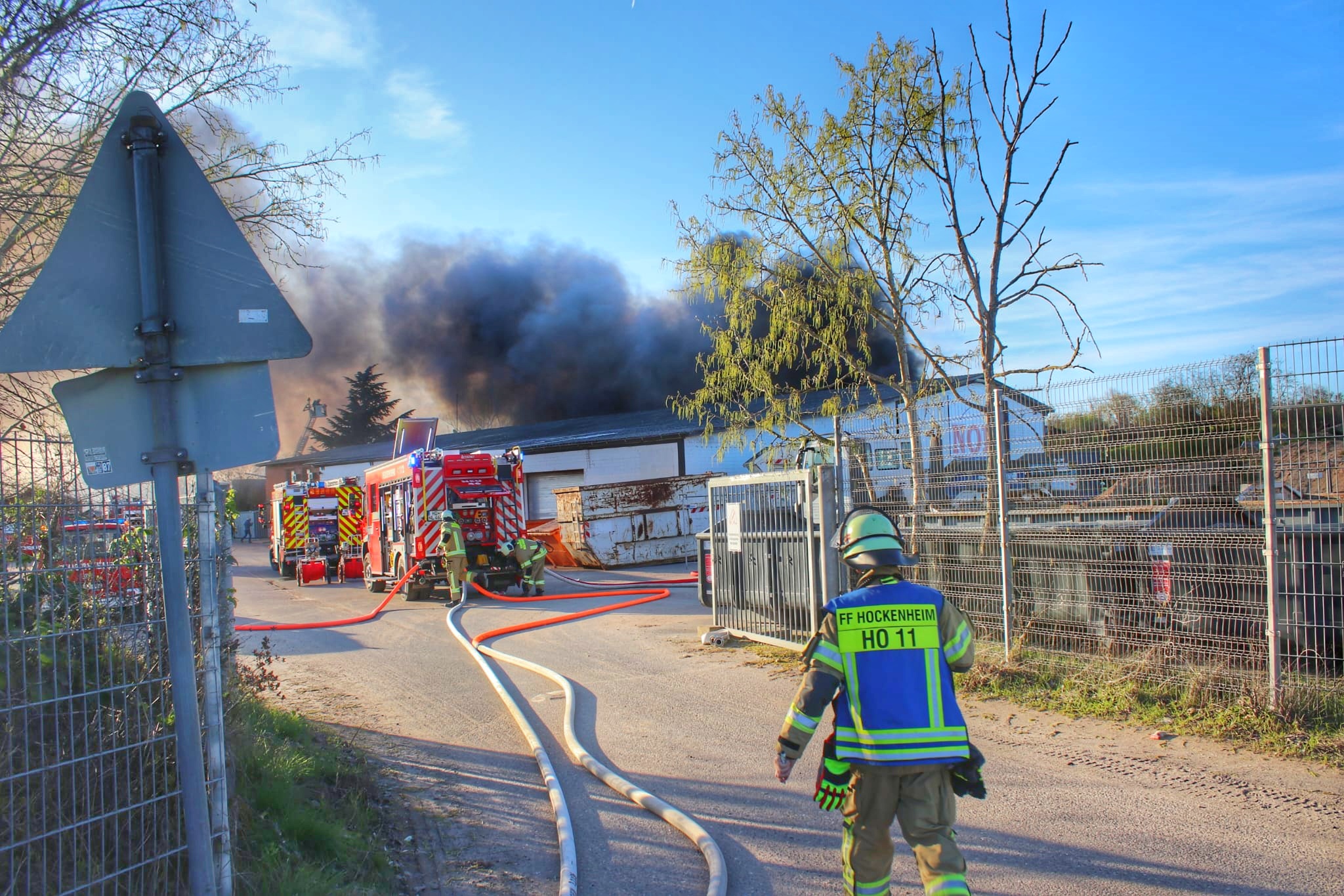 Durch die eingesetzten Polizeibeamten des Polizeirevier Hockenheim sowie durch Angehörige der verständigten Freiwilligen Feuerwehr Neulußheim wurde auf dem entsprechenden Firmengelände eine Lagerhalle festgestellt, welche in Vollbrand stand.