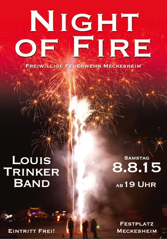 Nach einjähriger Pause veranstaltet die Freiwillige Feuerwehr Meckesheim am Samstag den 8. August 2015 Ihre neunte NIGHT OF FIRE, das etwas andere Feuerwehrfest!