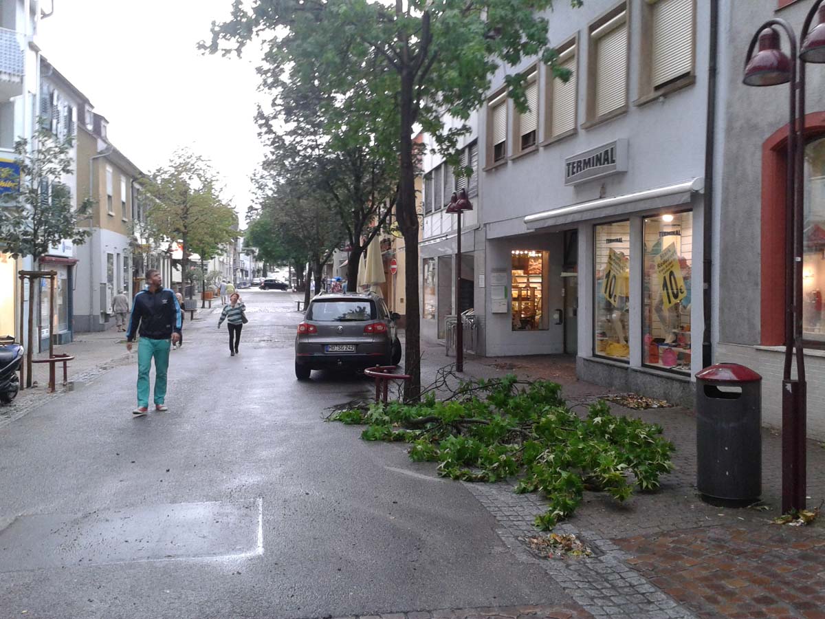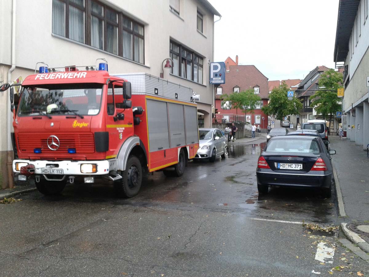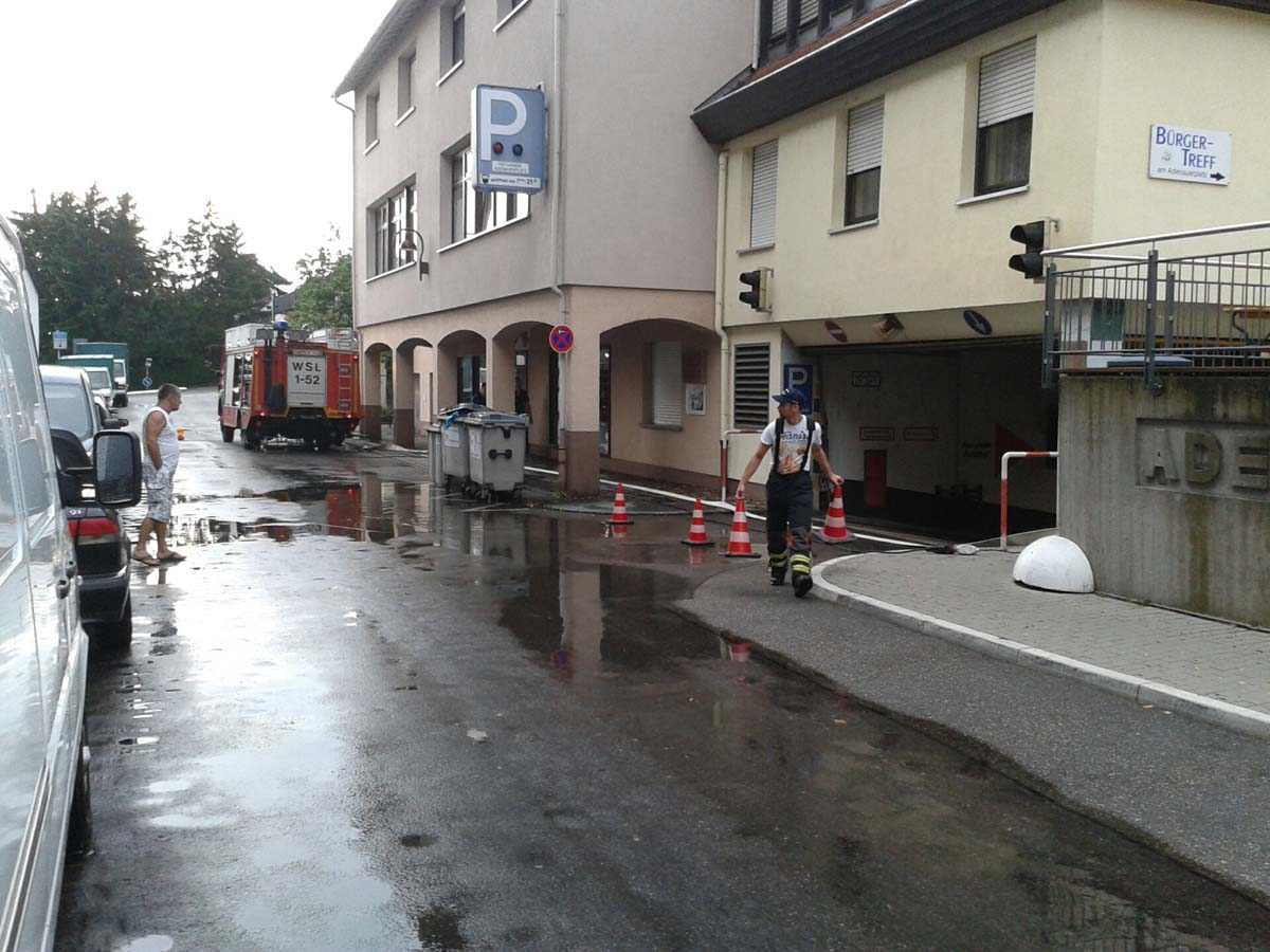 (cr) In Wiesloch hatte die Feuerwehr so einiges zu tun. Die Rathaus Tiefgarage und die Adenauer Tiefgarage standen bis zu 25 cm unter Wasser. Viel Äste brachen von den Bäumen. In der Luisenstrasse wurden die Gullideckel angehoben und überspülten die Strasse. Auch ein Keller in der Rathausgasse lief voll. Personenschäden sind keine bekannt.