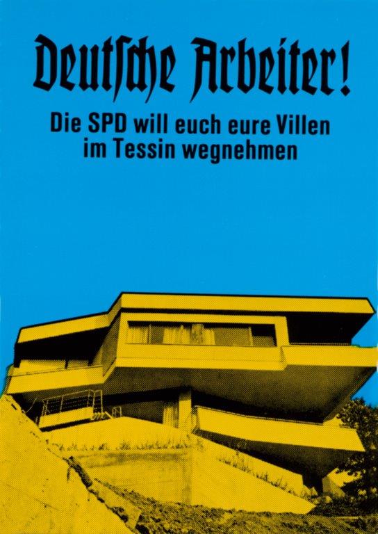 Das Plakat „Deutsche Arbeiter! Die SPD will euch eure Villen in Tessin wegnehmen“ zur Bundestagswahl 1972 brachte den Durchbruch für den 1938 in Pulsnitz (Sachsen) geborenen und heute in Heidelberg lebenden Grafikdesigners und Karikaturisten Klaus Staeck.