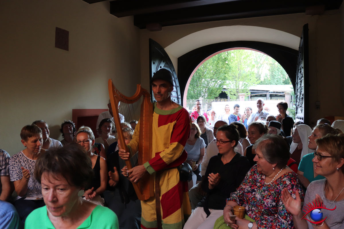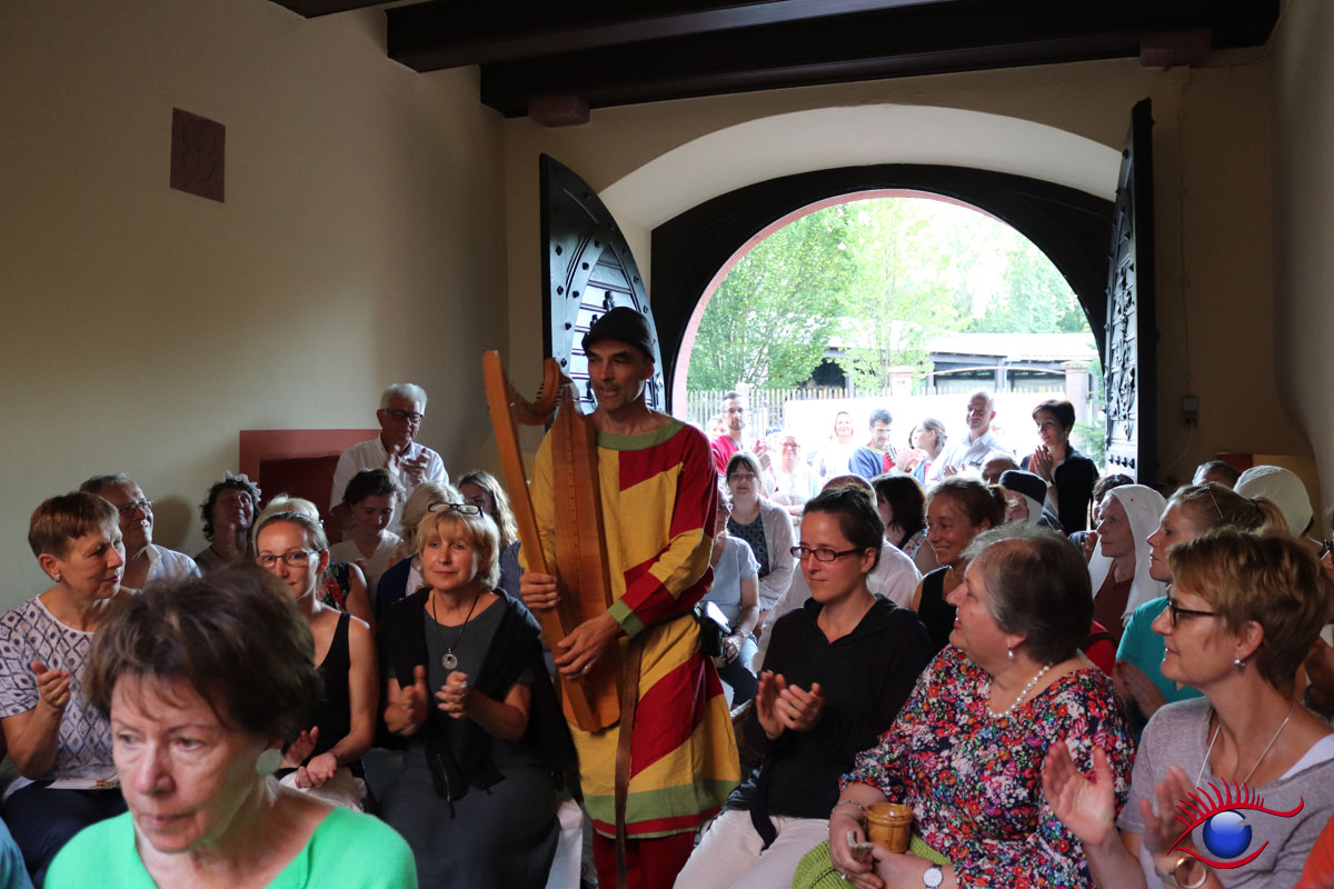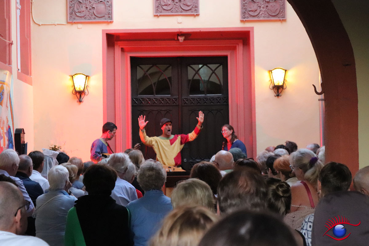 Wiesloch-Schatthausen, 29.06.2019 (rp) – Am gestrigen Tag: prachtvoller und gelungener Auftakt zum „Wochenende im Mittelalter“ mit viel Handgeklapper – die Kultur AG lud zu einem Minnesänger-Konzert mit Knud Seckel in den kleinen Innenhof des Schatthäuser Wasserschlosses.