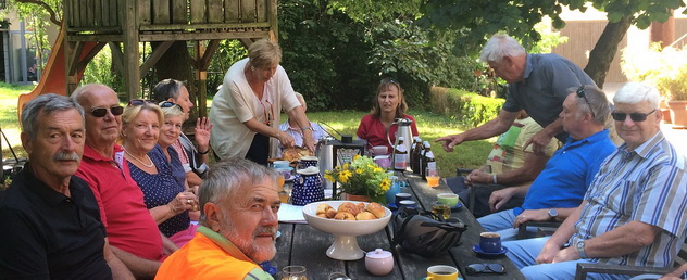 Dieses Mal ging es in den östlichsten Stadtteil Wiesloch nach Schatthausen, wo der Ortsvorsteher Fritz Sandritter die Gruppe in Empfang nahm. Nach einer kurzen Rast im Garten der Familie Sandritter, begab man sich auf einen Spaziergang durch Wieslochs kleinstem Stadtteil.