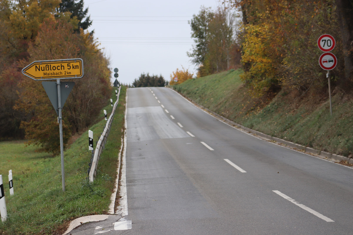 Die L 547 zwischen Baiertal und Schatthausen ist gelinde gesagt, schon sehr in die Jahre gekommen. Die Strasse ist in keinem guten Zustand. Bedingt vorallem durch den Schwerlastverkehr, sind Spurrinnen entstanden ebenso auch Risse in der Fahrbahn sowie Schlaglöcher.