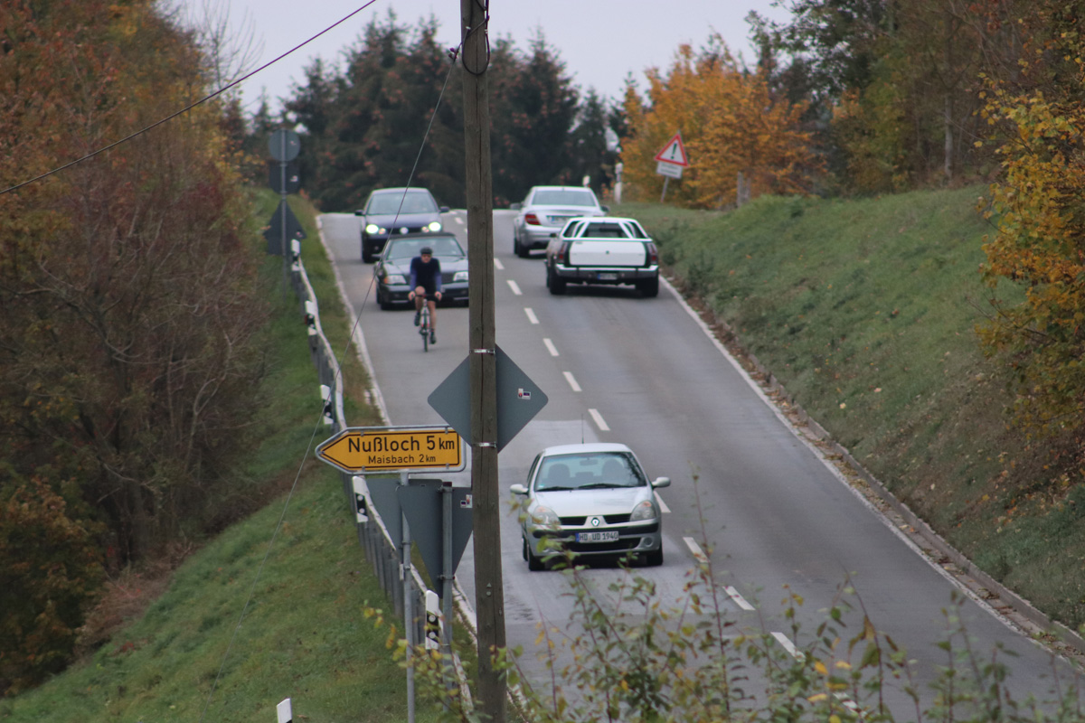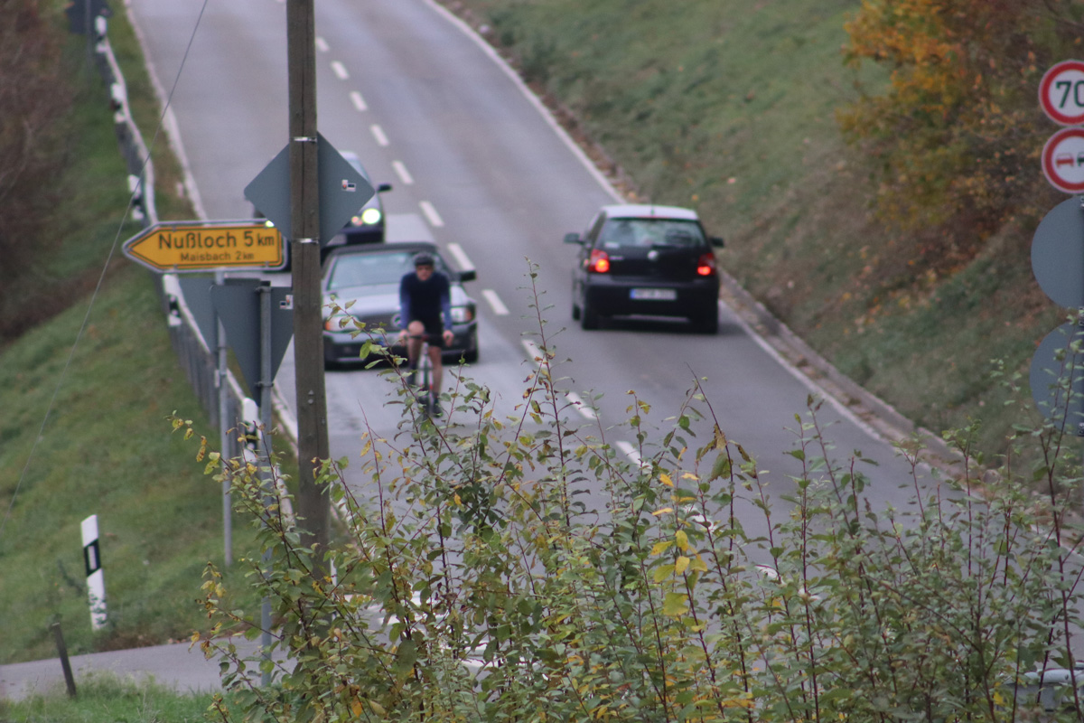 Doch was bringt der schönste Radweg, wenn unverbesserliche Radfahrer bewusst sich selbst und andere Verkehrsteilnehmer in Lebensgefahr bringen? – Tagtäglich lässt sich vorallem im Frühjahr und den Sommermonaten, jedoch auch aktuell im Herbst, beobachten wie hauptsächlich Rennradfahrer auf der Landesstraße L 547 zwischen Baiertal und Schatthausen radeln.