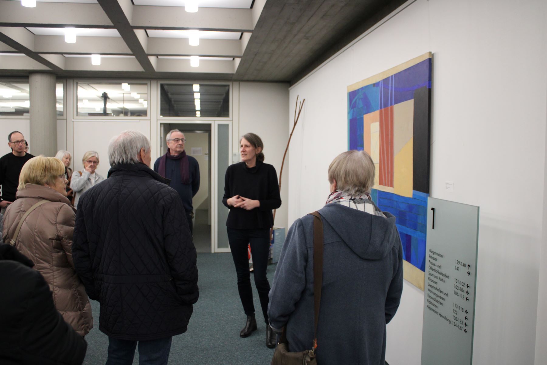 „Die Ausstellung ist als Auftakt zu verstehen“, sagt Dr. Kristina Hoge. „Was hat Walldorf schon zu bieten? Wie kann man es vielleicht noch mehr sichtbar machen?“, sind Fragen, die sie beschäftigen. Die neue Kunstbeauftragte der Stadt kann mehr als zwanzig Interessierte zu einem aufschlussreichen Rundgang durchs Rathaus empfangen, in dem seit Mitte November unter dem Titel „Status quo“ eine Auswahl von Werken aus der städtischen Kunstsammlung gezeigt wird, die aus Ankäufen über einen Zeitraum von dreißig Jahren entstanden ist. Kurzfristig wurde inzwischen entschieden, dass die Ausstellung bis Freitag, 20. Februar, verlängert wird.