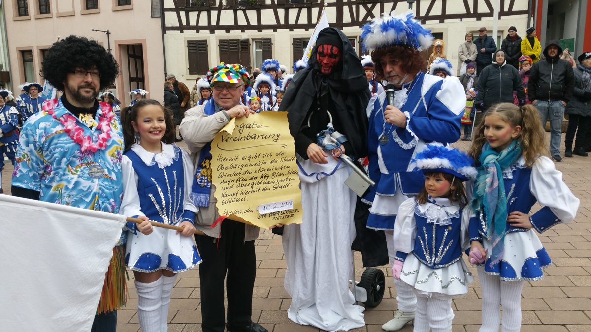 Gemeinsam mit dem KG Blau-Weiss Wiesloch, dem Elferrat, den Garden, den Prosecco Girls und den Havana Club Boys und einigen Einzelkämpfern wurde das Rathaus samt Angestellten unter die närrische Kontrolle gebracht. Die Macht war mit ihnen.