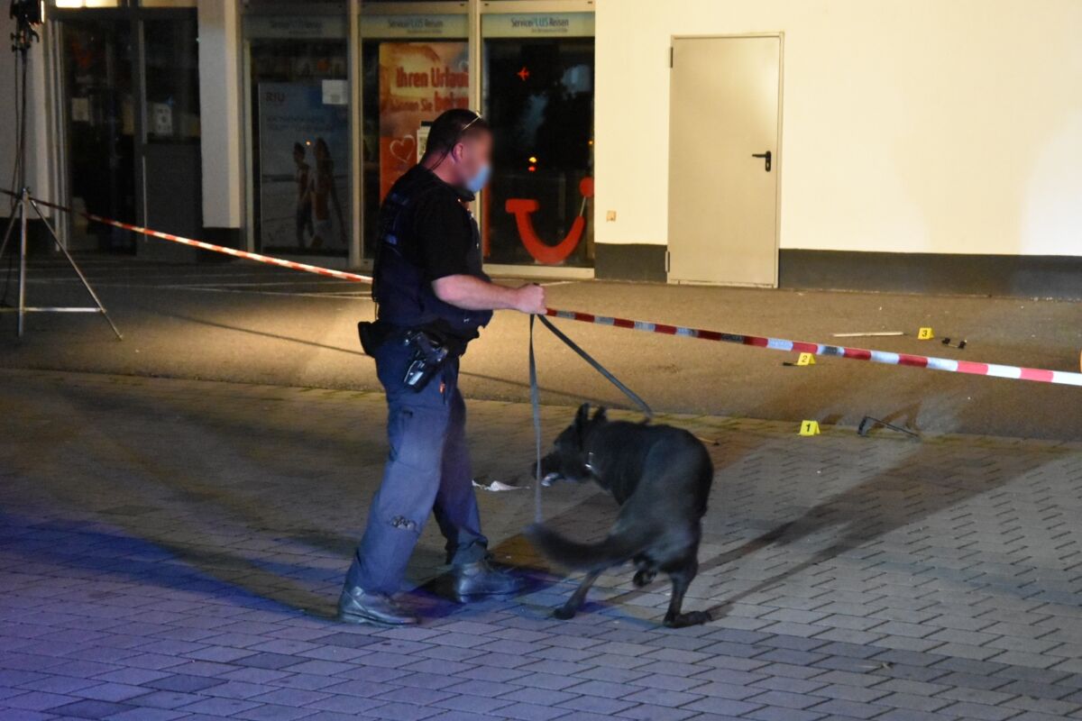 Mit allen verfügbaren Kräften fahndet die Polizei überregional nach den Tätern, die am frühen Freitagmorgen einen Geldautomaten in einem Einkaufszentrum in der Straße „Frankenäcker“ sprengten. Dabei war auch ein Polizeihubschrauber eingebunden.