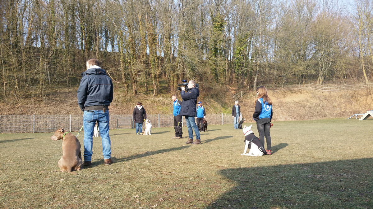 Auf dem Hundeplatz des HSV Tairnbach e.V. konnte das Fernseh-Team die unterschiedlichesten Hunderassen beim Training beobachten. Auch Bestandteile des Wesentests wurden vor der Kamera vorgeführt.