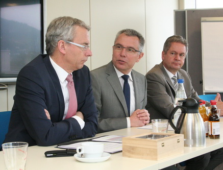 (Foto Silke Hartmann) Die Landräte des Rhein-Neckar-Kreises, Stefan Dallinger, des Landkreises Karlsruhe, Dr. Christoph Schnaudigel, und die Kreises Bergstraße, Matthias Wilkes