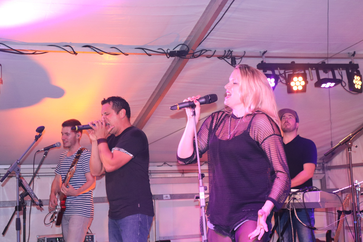 „MAMA LAUDA“ heizten das Festzelt in Schatthausen ordentlich auf, von „hip to be a square“ über „Mambo No.5“ zu „Gimme hope Joanna“ oder „Rebel Yell“ brachten sie die richtig Mischung für einen gelungenen Abend mit.