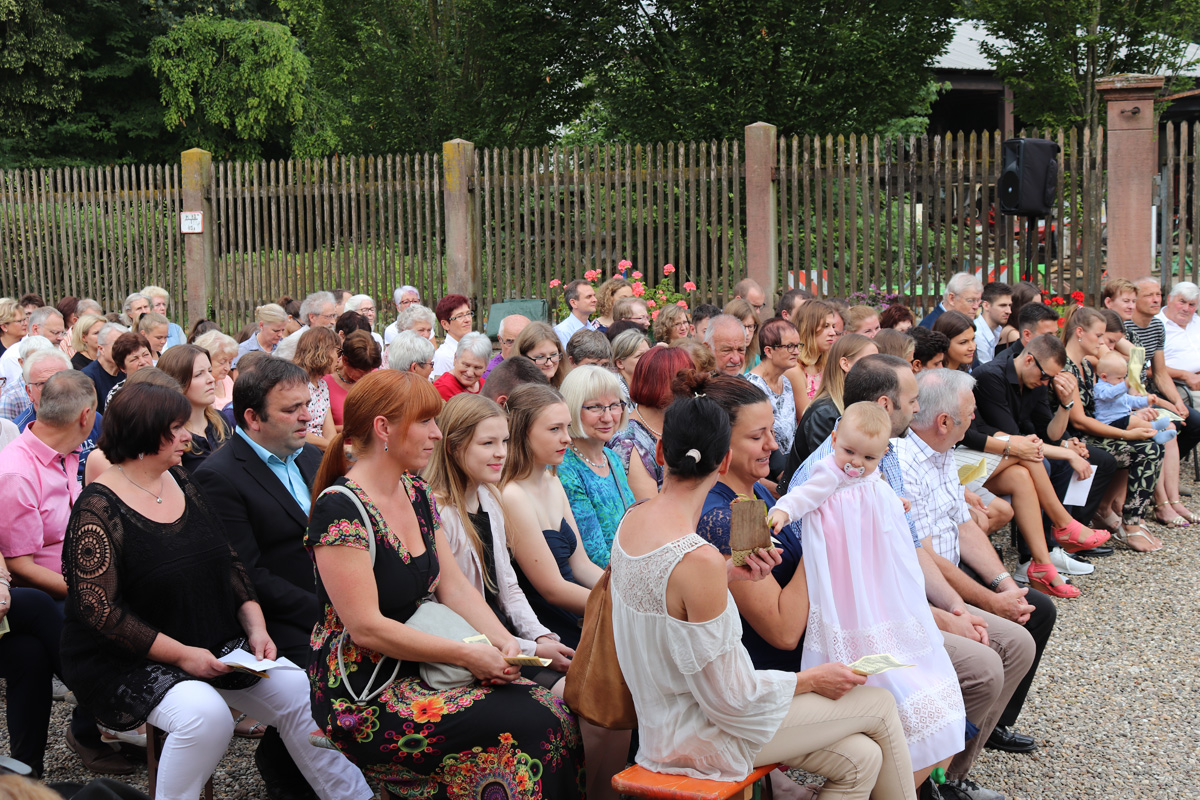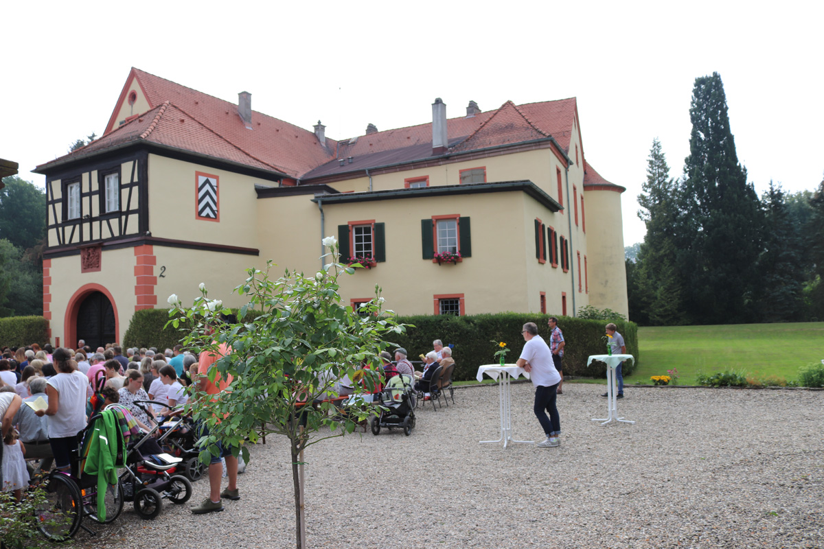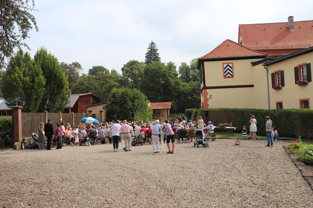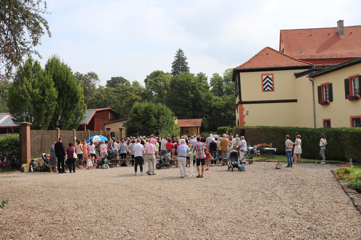 Am Sonntag dem 22. Juli 2018 fand ein Familiengottesdienst mit Taufen unter freiem Himmel im Schlosshof des Wasserschlosses Schatthauen statt.