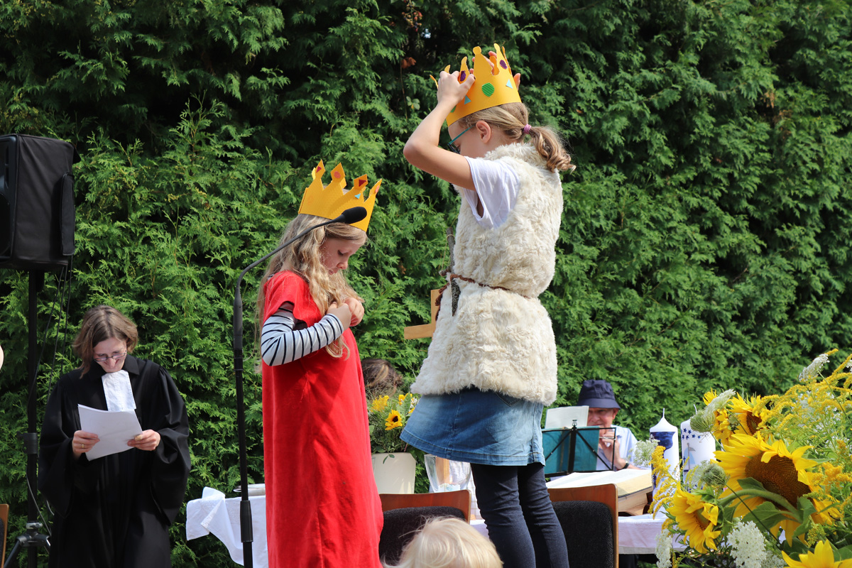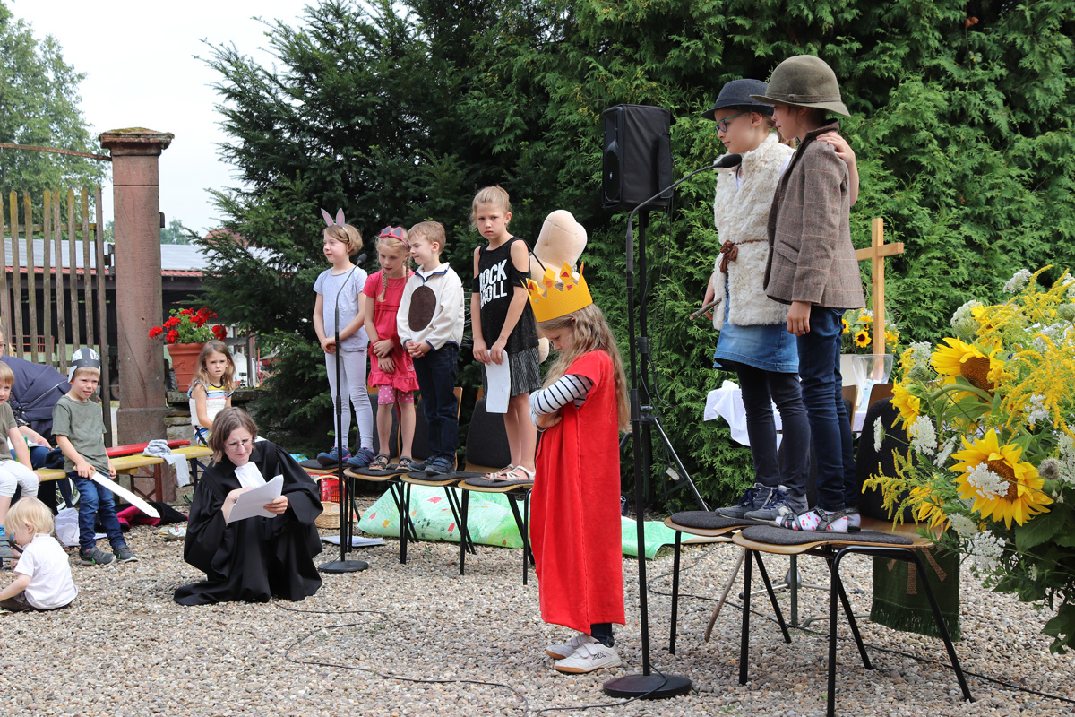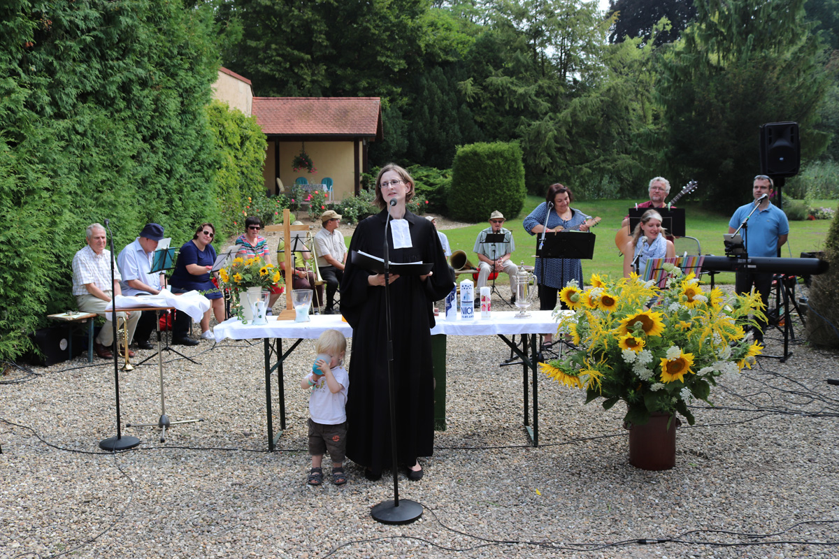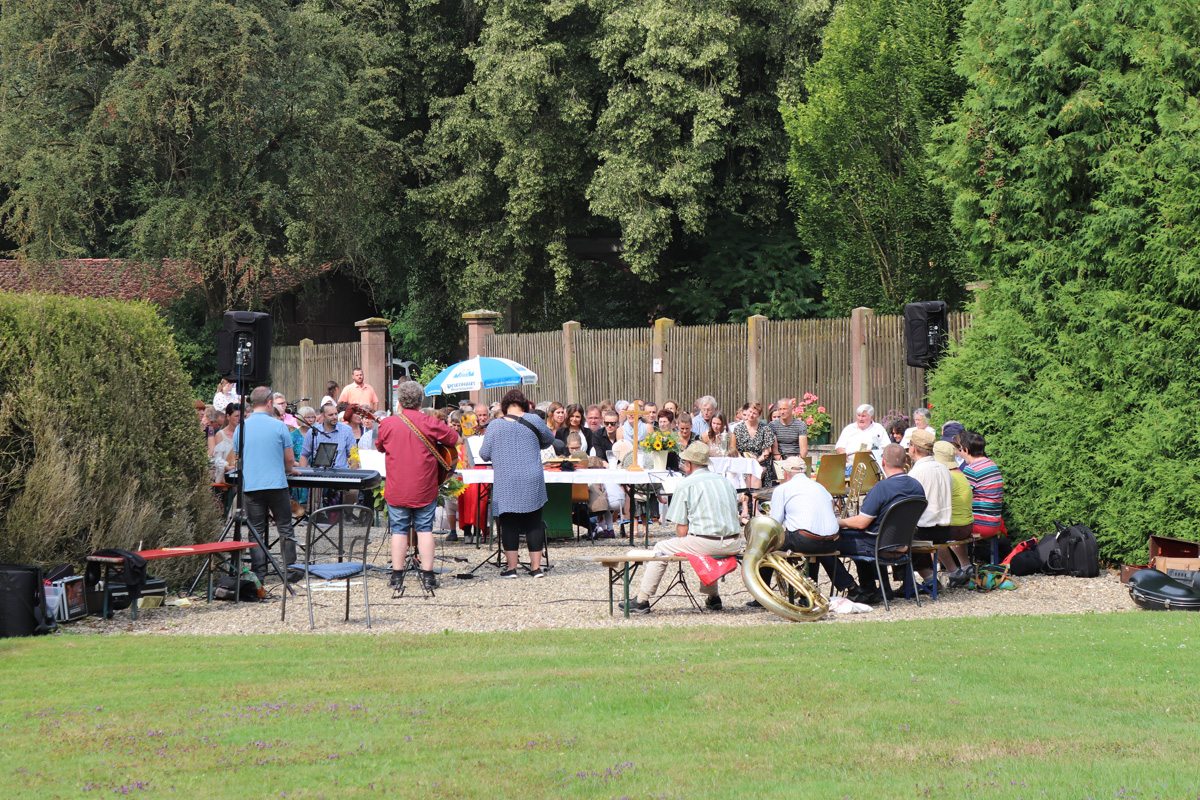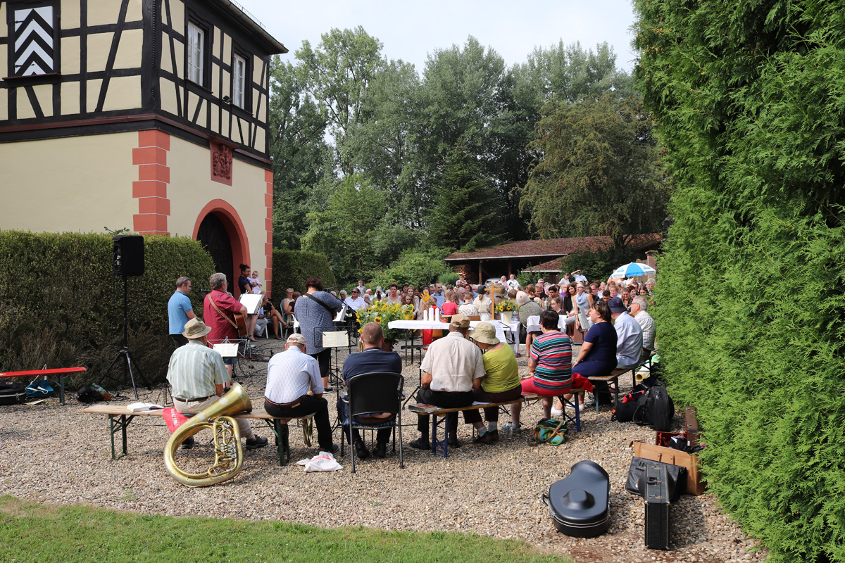 Am Sonntag dem 22. Juli 2018 fand ein Familiengottesdienst mit Taufen unter freiem Himmel im Schlosshof des Wasserschlosses Schatthauen statt.
