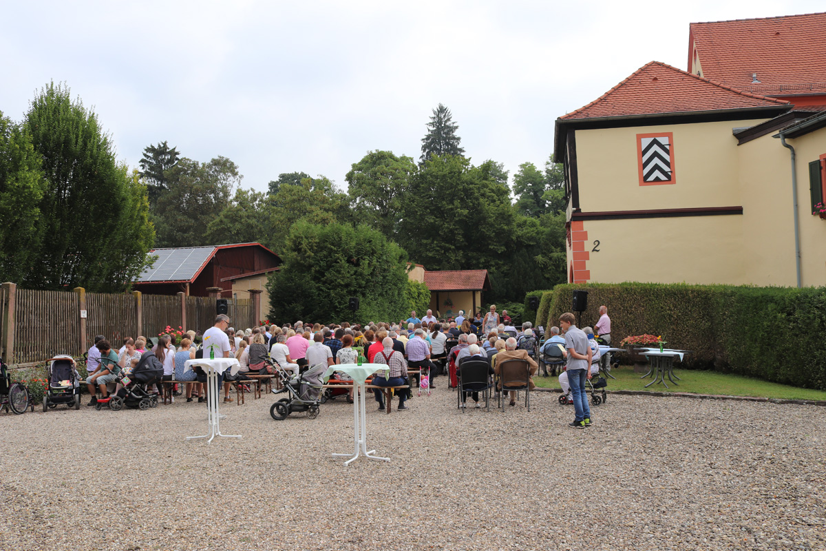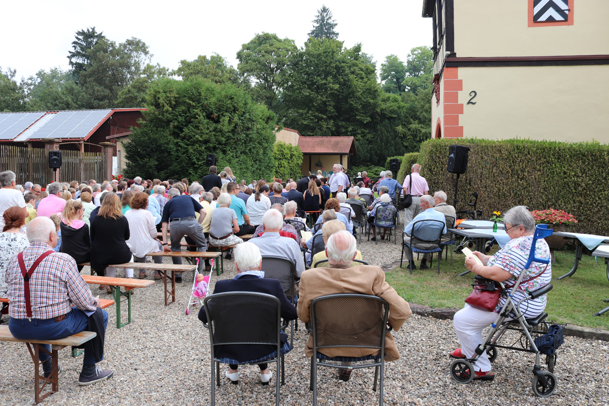 Besonderer Dank galt dem Patron der evangelischen Kirchengemeinde, Klaus Freiherr von Göler, der den Schlosshof für diesen Gottesdienst zur Verfügung gestellt hatte.