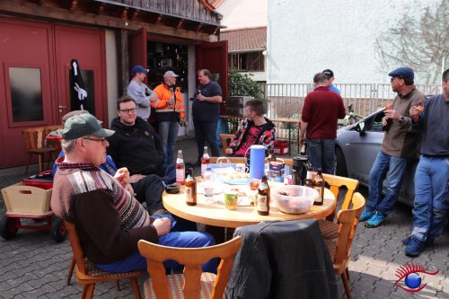 Was für die anderen Helfer die sich schon bei der Dorfscheune zusammen gefunden haben, sichtlich belustigend war. Nach getaner Arbeit, gab es dort Speis und Trank zum Dank.