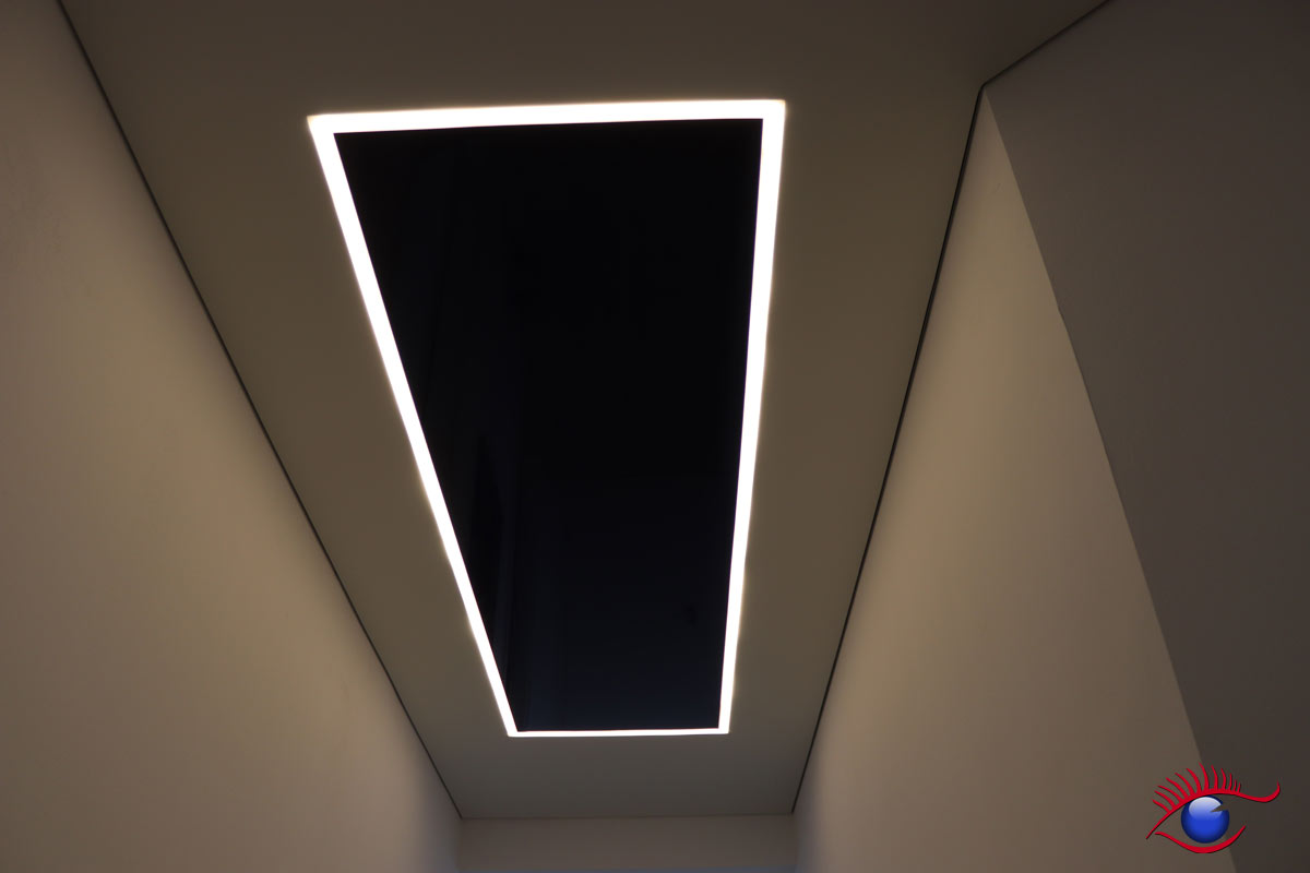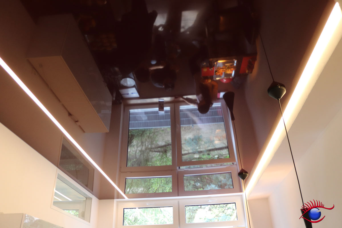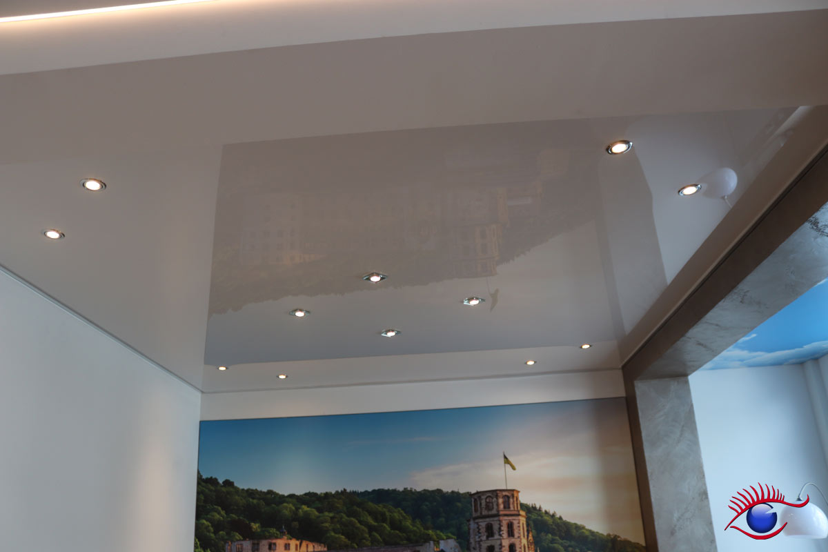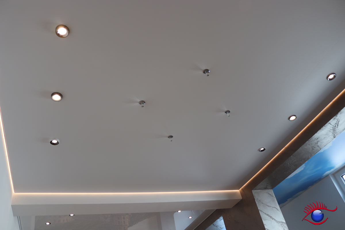 In der Ausstellung befinden sich u.a. Decken-Beispiele für Büroräume, Badezimmer, Wohn-und Essbereiche sowie die Küche.